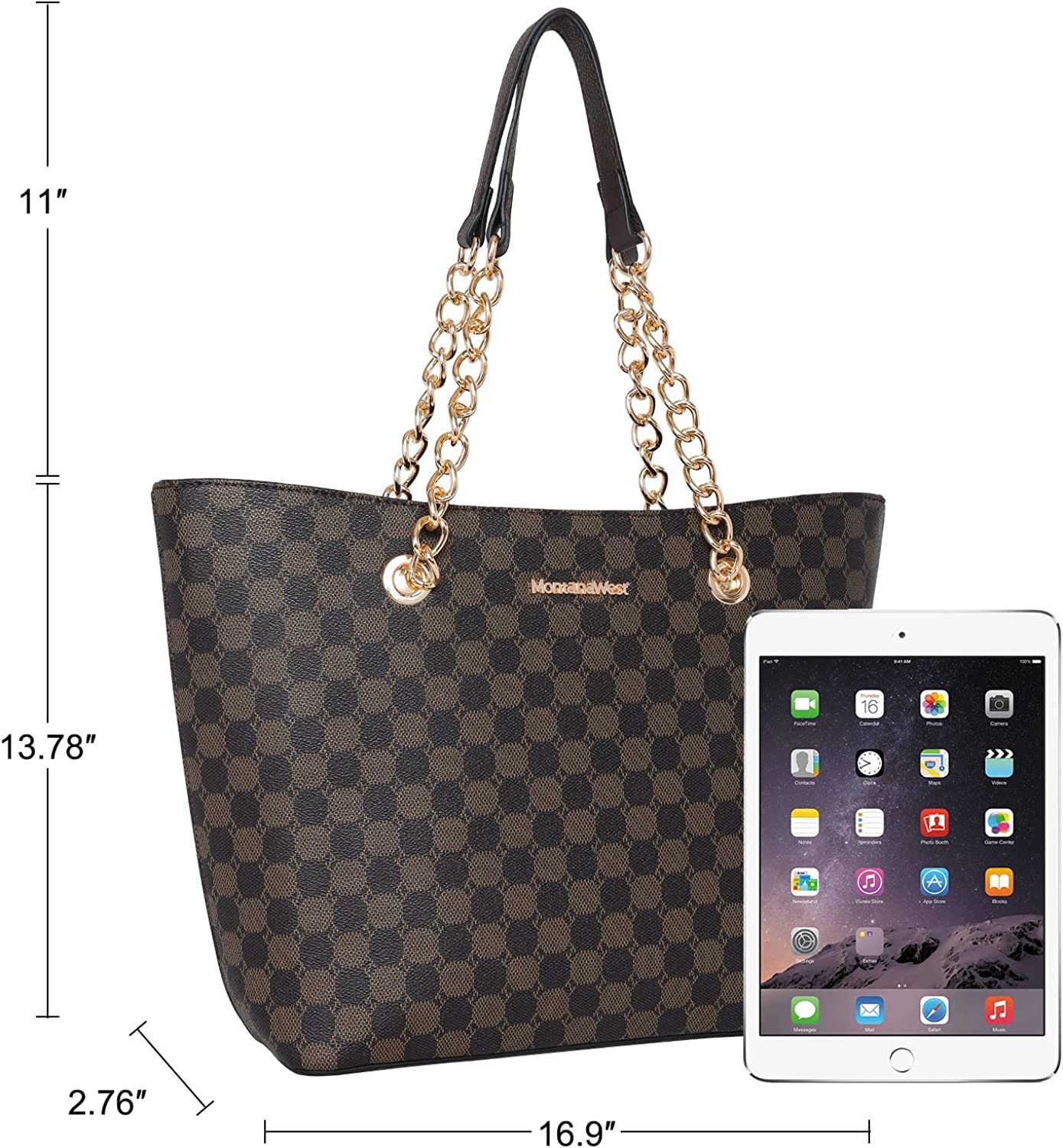 ❤ 【Large Capacity】: Dimension: 14.8 (W) x 11 (H) x 5.8 (D) inch, handle drop: 10 inche, Weight: 1.65 lb, this large tote bag can keep your iPad, magazine, keys, notebook, umbrella, wallet, sunglass, phone, lipstick and cosmetics well organized.