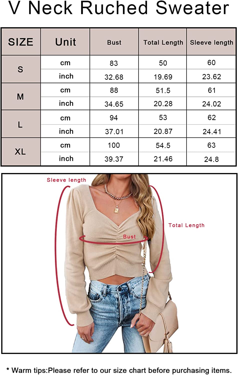 • OBSESSED with This Cute Sweaters for Women:This Long Sleeve Sweater Features Long Sleeve,Sweetheart v Neckline,Solid Color,Shirred Front,,Ribbed Cuffs And Hem With Elasticity,Slim Fit And Slightly Revealing Belly Design.Pleated Design On The Front Chest Of This Knit Tops For Women Long Sleeve,Cute And Elegant Style. Lovely Knit Crop Top In Your Wardrobe.