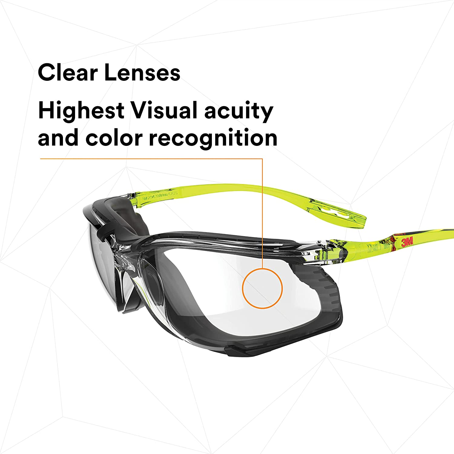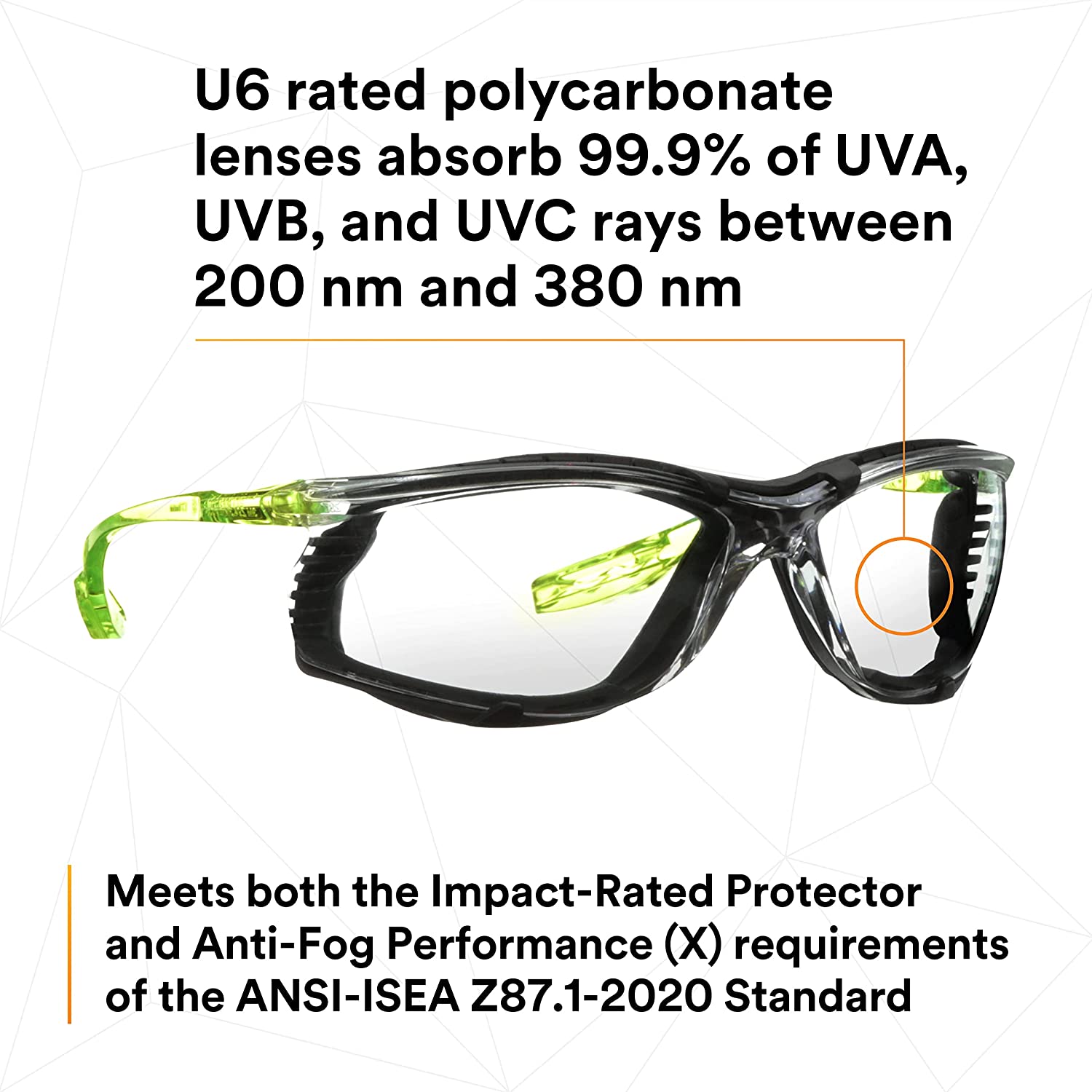 3M Safety Glasses, Solus CCS Series, ANSI Z87, Scotchgard Anti-Fog Coating, Clear Lens, Corded Ear Plug Control System, Removable Foam Gasket, SCCS01SGAF-GRN-F