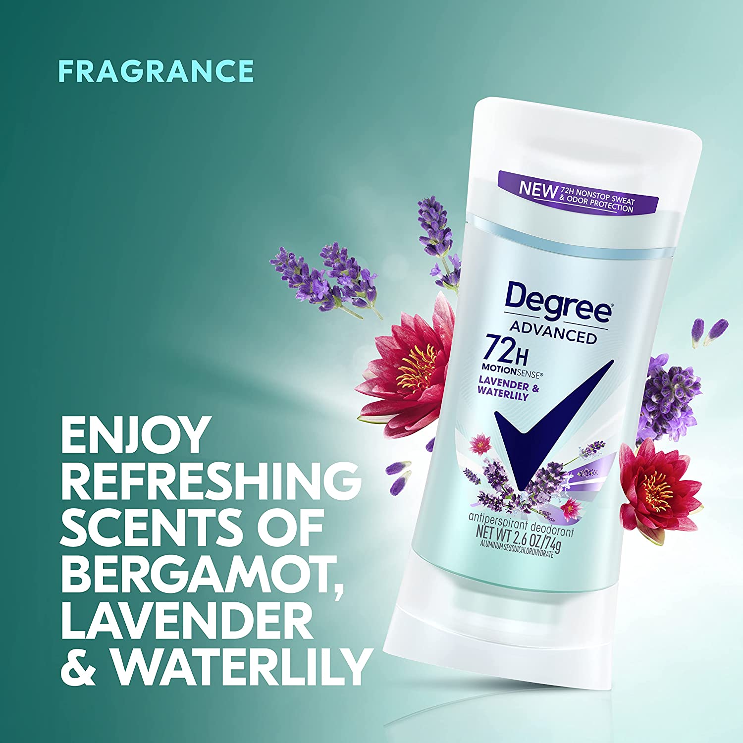• NONSTOP FRESHNESS: Degree Advanced Lavender and Waterlily Antiperspirant Deodorant keeps you feeling fresh and clean with 72-hour sweat and odor protection