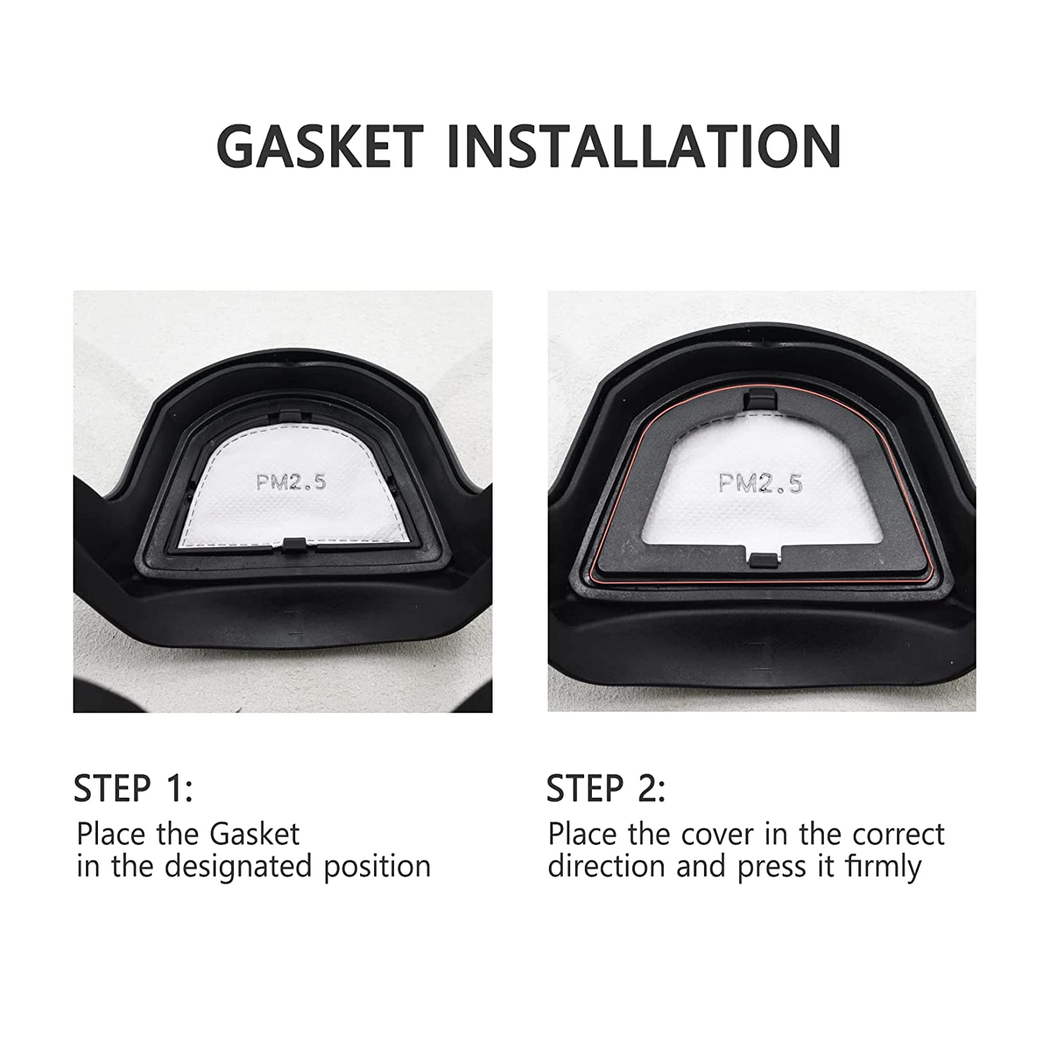 • 【Removable replacement Gasket】-- This mask comes with two filter Gasket. Before use, please remove the filter slot at the bottom of the lower cover, place the filter pads flat on top, cover and put them back. It can effectively filter airborne particles, safe and reliable.