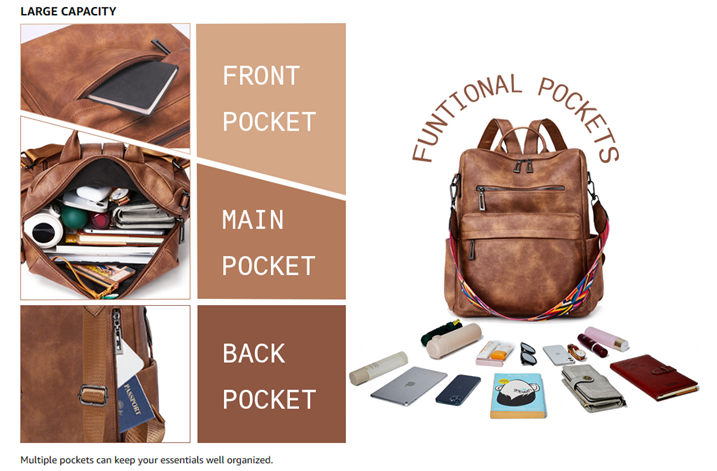 • 【CONSTRUCTION & LARGE CAPACITY】 This leather backpack purse for women adopts a double zipper with a large vertical opening at the top, which is very convenient for loading items. 1 interior zipper pocket, 1 interior slot pocket, 2 front zipper pockets, 2 side pockets, and 1 back zipper pocket. Multiple pockets can keep your things well organized.
