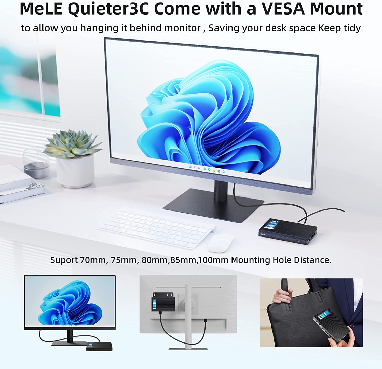【Support 4K@60Hz Dual Screen UHD Display】--MeLE Quieter2 mini computer comes with intergrated UHD Graphics 600,which can improve your video pictures to be more vivid.By speed shift technology making the processor to run more quickly so as to improve playback experience.Besides, this Windows mini PC is designed with 2 HDMI ports, which could be connected easily with 2 different displays at the same time for dealing with your work efficienly.