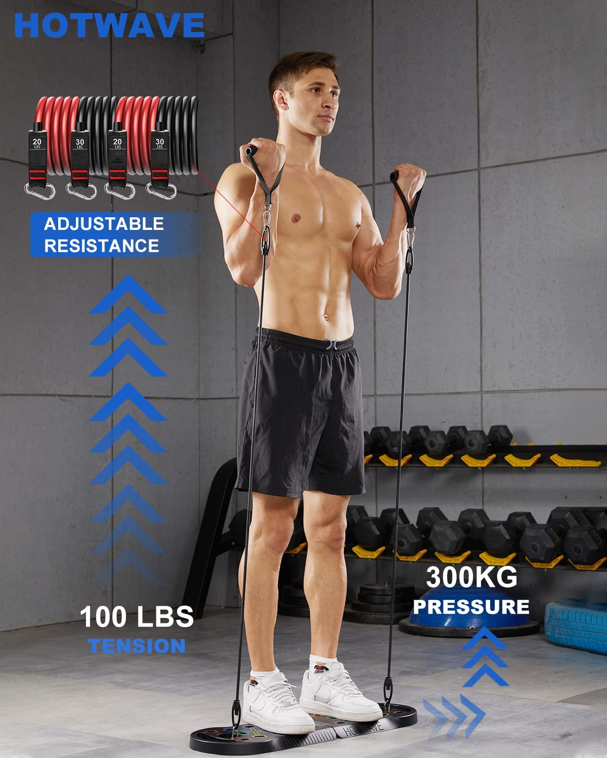 - 【LIGTH AND PORTABLE】The Hotwave board is lightweight, but very strong and safe,It made of ABS Ductile plastic that with strong toughness. The resistance bands have great elasticity. The non-slip push up handles provide a firm grip and distribute pressure evenly to reduce joint pressure. There are also added non-slip plugs to help stabilize your body while exercise.
