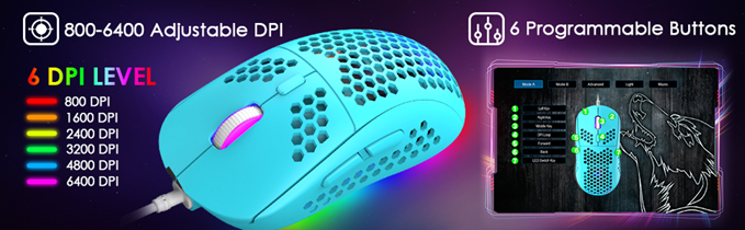 2, Customize DPI Switch:800 -6400DPI. (6 level adjustment)