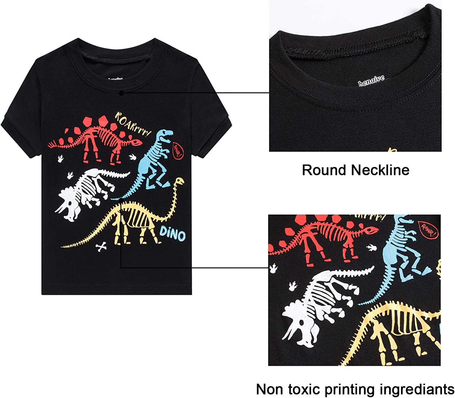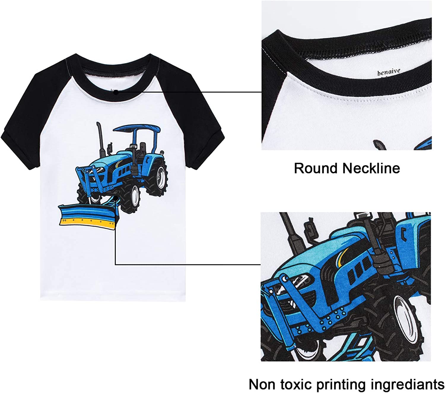 Benaive Pajamas for Boys, Pjs for Boy Cotton Summer Pajama, 4-Piece Children Shorts Set