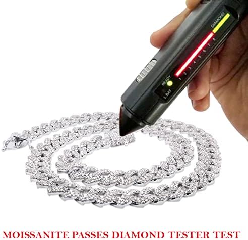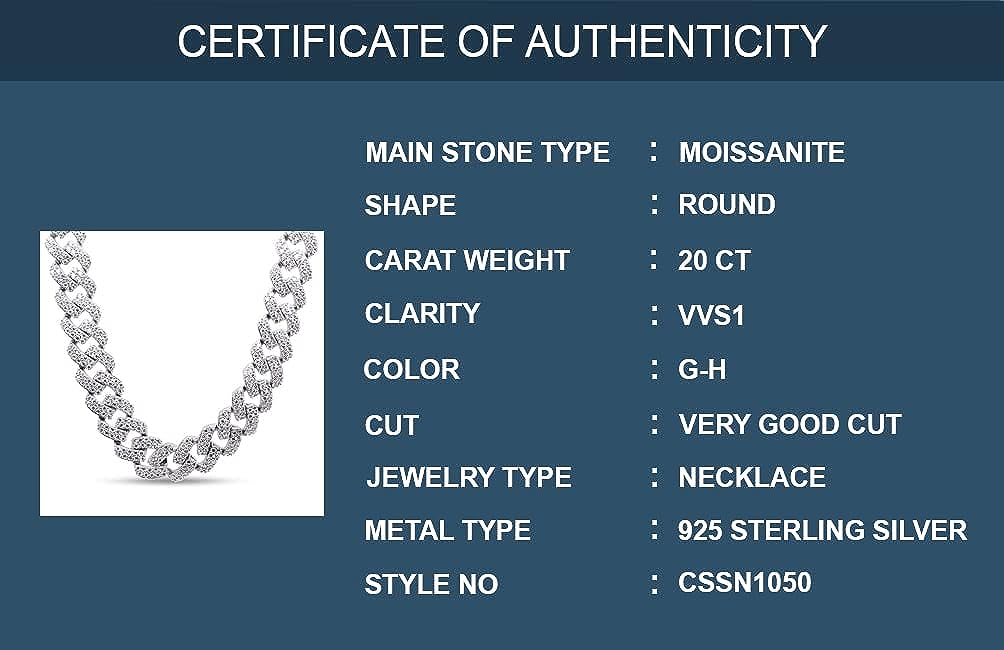 SAVEARTH DIAMONDS Certified 20 Cttw to 26 Cttw Round Cut Lab Created Moissanite Diamond 12MM Width Cuban Chain Necklace In 14k Gold Over Sterling Silver 18" to 24" Length, G-H/VVS1