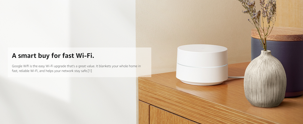 This Google Product features the Google Seal for Online Marketplace when purchased from a seller other than Amazon. Google Wifi is an easy-to-set-up whole-home mesh Wi-Fi system. Google Wifi points work together to create a mesh network that blankets your whole home in fast, reliable Wi-Fi and eliminates buffering in every room, on every device – with coverage up to 4500 square feet.[1] It’s Wi-Fi that just works. [1] Home size, materials, and layout can affect how Wi-Fi signal travels. Larger homes or homes with thicker walls or long, narrow layouts may need extra Wifi points for full coverage. Strength and speed of signal will depend on your internet provider. [2] Minimum OS requirements are available at g.co/googlewifi/req. [3] Controlling certain devices and features in your home requires a compatible smart device.