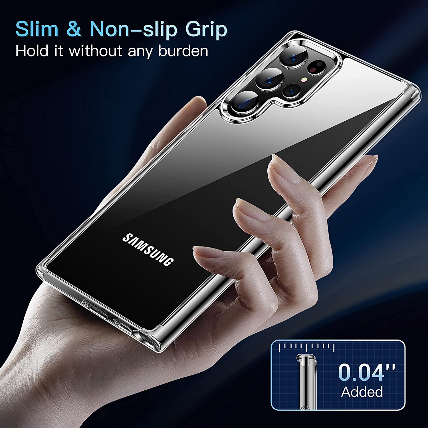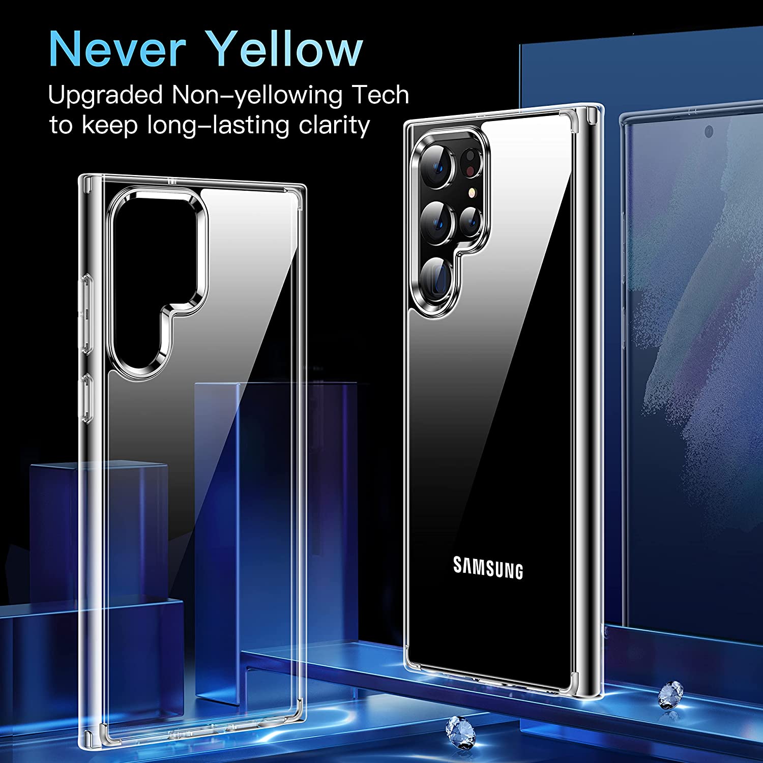 - ?[100% Crystal Clear & Never Yellow]: This crystal clear case is designed for Samsung S22 Ultra, fully shows the original beauty of your new Galaxy. After researching day and night select adopts upgraded Germany Top Bayer Material and Antioxidant molecule Layer to keep the long-lasting clarity than other. Shinning the beauty of your Galaxy all the time.