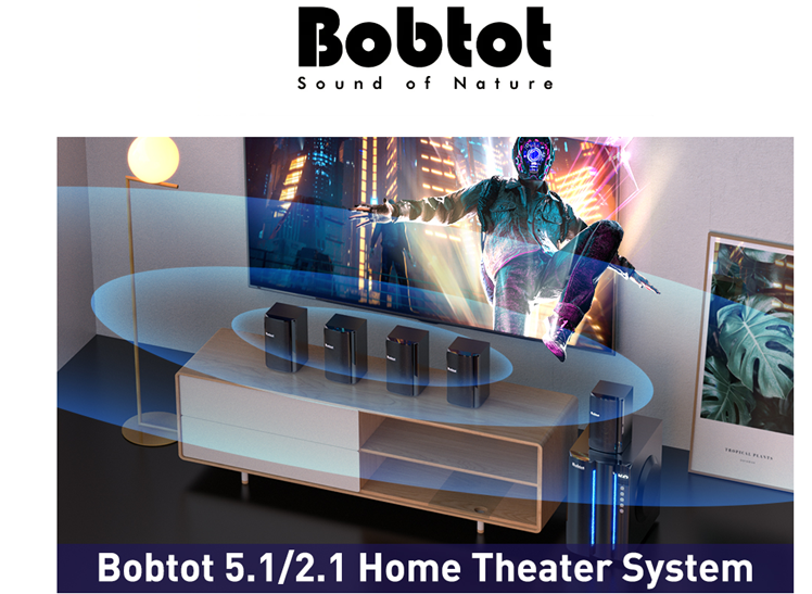 • 5.1 Channel Surround Stereo Sound: Bobtot surround sound system has two modes of 5.1/2.1 channel, switch via remote control or front panel. Pro surround function provides you with more advanced enjoyment. Via the Remote you can also independently control the volume of each speaker and the subwoofer