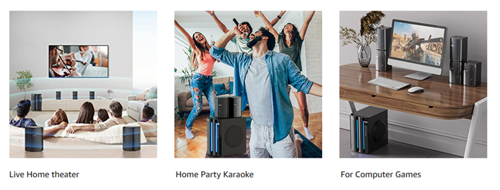 • Multiple Application: Easily plug and play, speakers are widely used for numerous scenarios such as Ultra HD 4K TV, game console, home DVD, computer, laptops, Projector. It's very suitable for watching movies, watching football games, partying, and e-sports games with friends at home