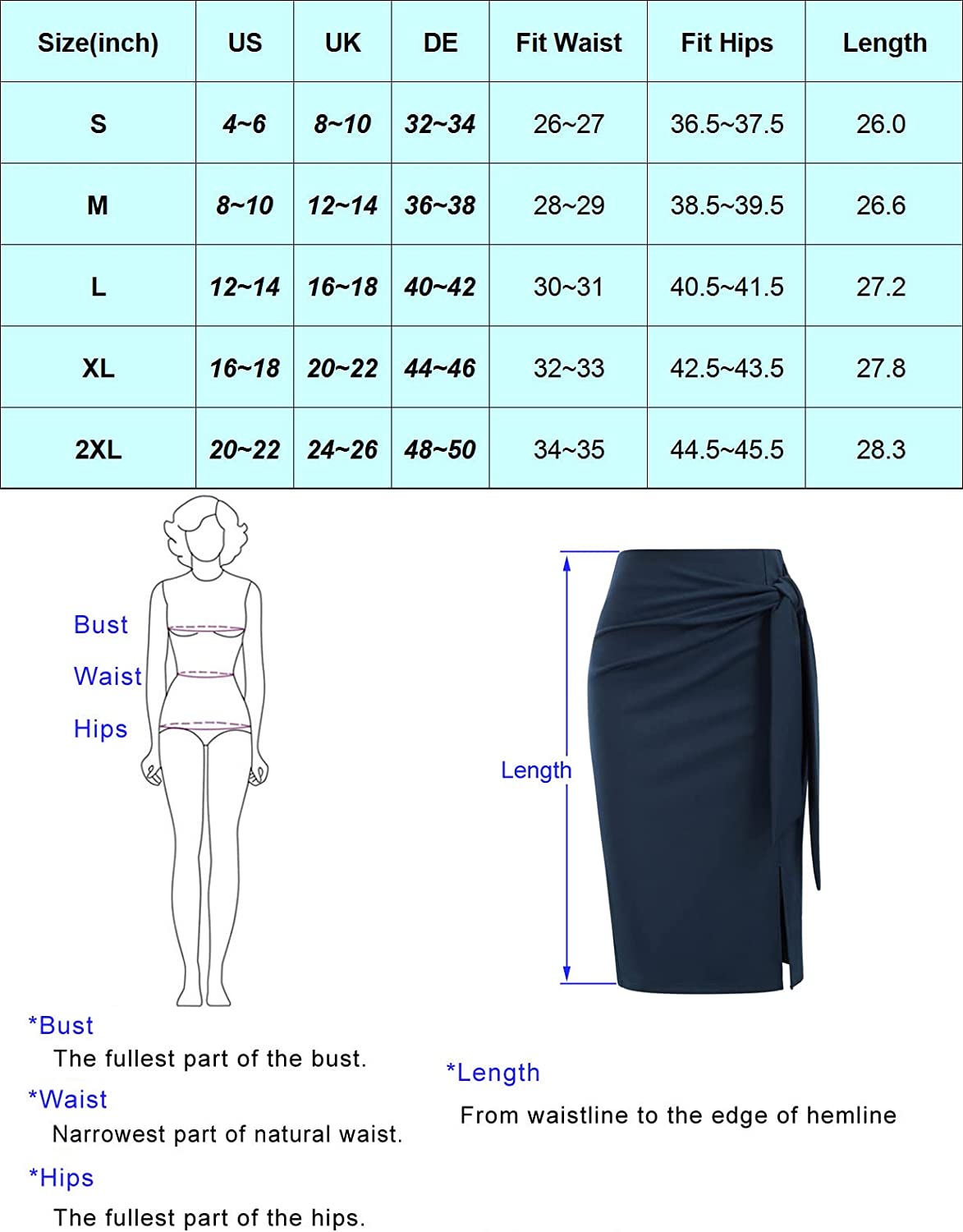 • These are versatile stretch bodycon pencil skirts easy to match with T-Shirt, blouse, vest, camisole, coat, jacket and high heels, sandals, booties etc., meet all your fashion outfits for all seasons