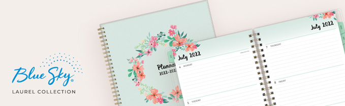 Plan your year in style with the beautiful florals and soothing color palette of the 2022-2023 academic year Laurel collection. This stylish weekly and monthly planner will keep you organized everywhere you go. Simple page designs add a touch of sophistication and offer plenty of room for all of your important information. Designed with practicality and ease of use in mind, this academic agenda's monthly calendar tabs allow for easy access to each month’s plans while weekly views offer ample writing space for detailing each day. High quality white paper provides clean writing space for jotting down your appointments, to-dos and reminders. Use this dated academic planner to keep track of your appointments, and to write down notes and ideas in one place. Durable coated tabbed dividers are long lasting and make accessing information a breeze. Premium quality covers and twin-wire binding provide reliable durability for daily use. Stay on track throughout the academic year with this large 8.5 x 11 planner dated July 2022 - June 2023. Mix and match with other Laurel Collection planning products from Blue Sky to organize your daily life. Blue Sky creates modern and sophisticated organizational planners and calendars to fit the scheduling needs of busy people - whether it’s for business professionals, college students, teachers, or anyone with appointments to make note of. Keep your life organized with our full line of products including desk pad calendars, wirebound tabbed weekly and monthly planners with contacts and notes pages to accommodate your scheduling needs, and laminated two-sided wall calendars, all in a variety of colors and patterns to suit your lifestyle and personality.
