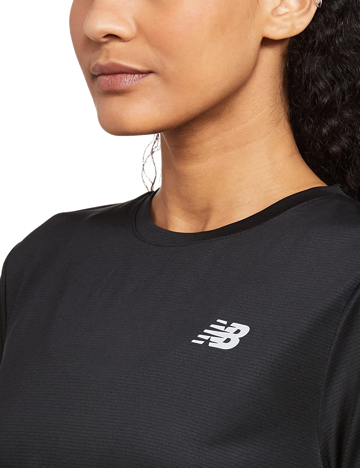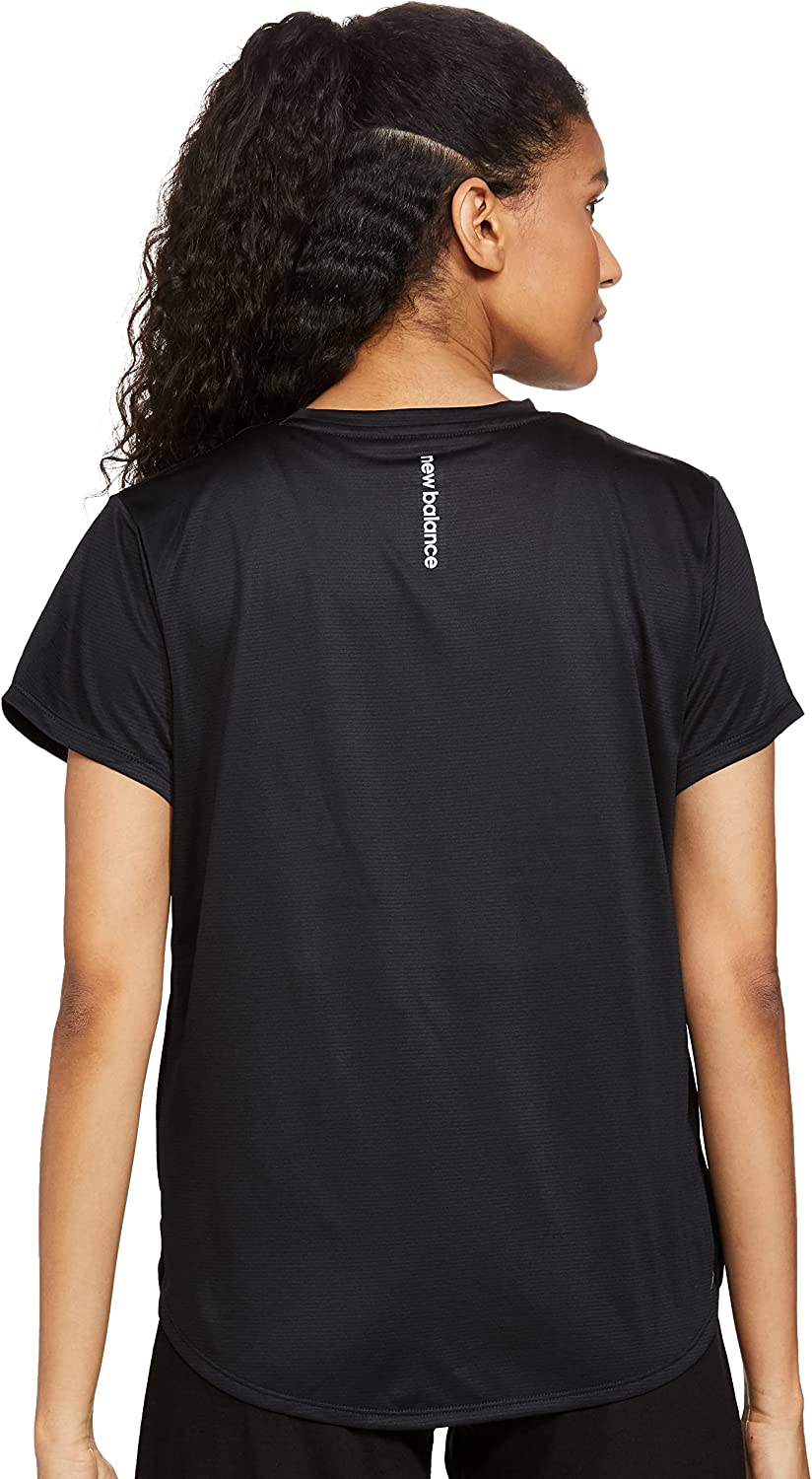 Womens New Balance Accelerate Short Sleeve Graphic :: Break a sweat in the New Balance Accelerate Short Sleeve with gradient graphic print, a textured polyester performance top with reflective details that help keep you well-ventilated, well-seen and well-motivated to workout. But you wont feel sweaty in this tee because NB DRY technology wicks away sweat quickly.