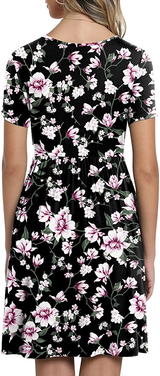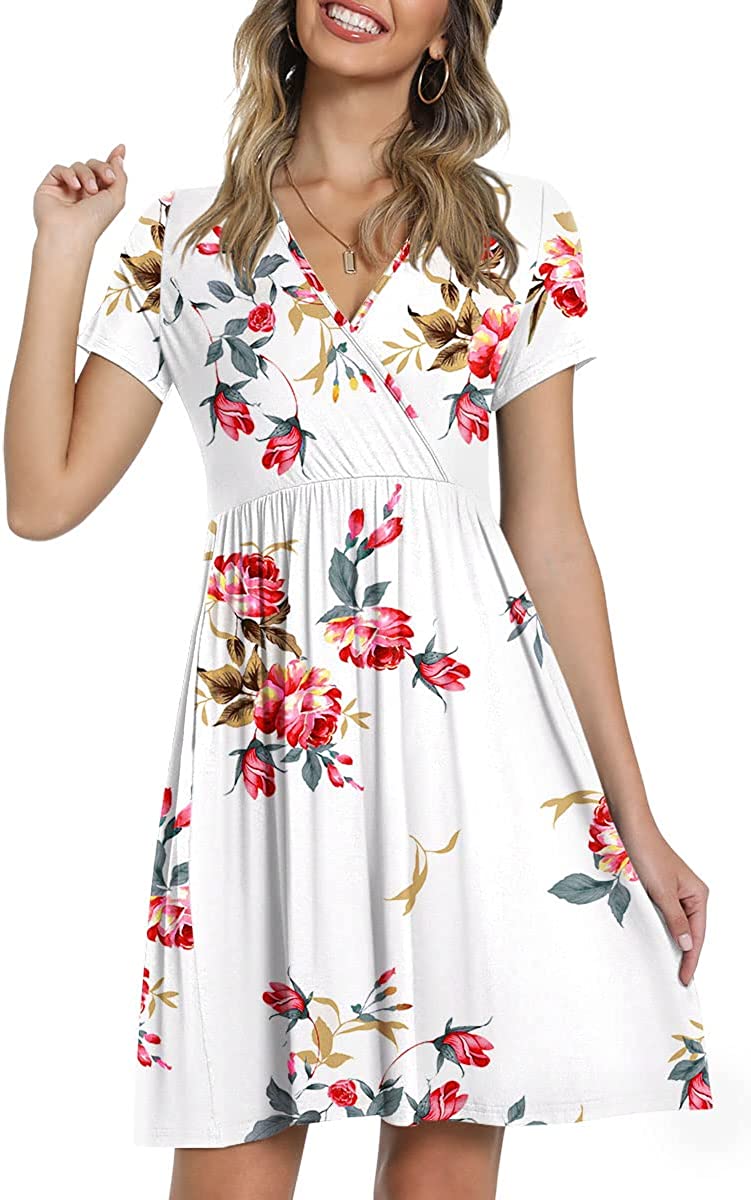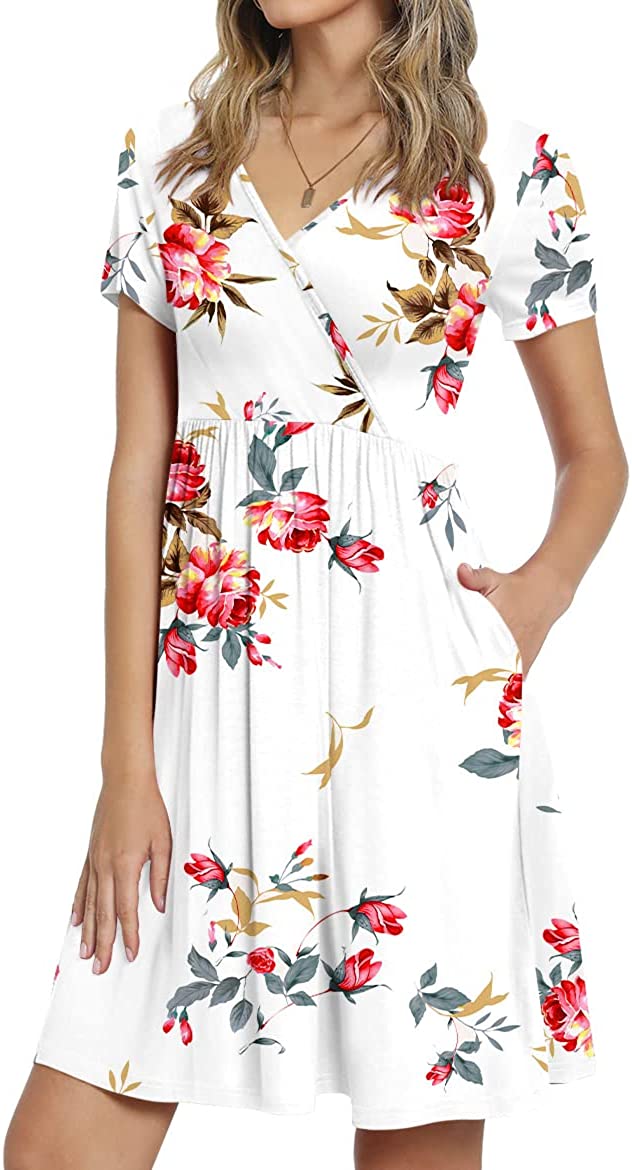 CATHY Womens Casual Tunic Dress Short Sleeve V Neck Dresses Loose Comfy Beach Sundress with Pockets