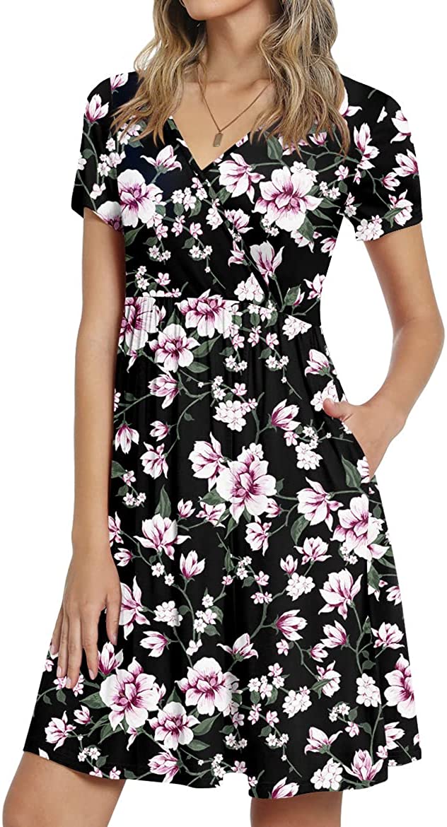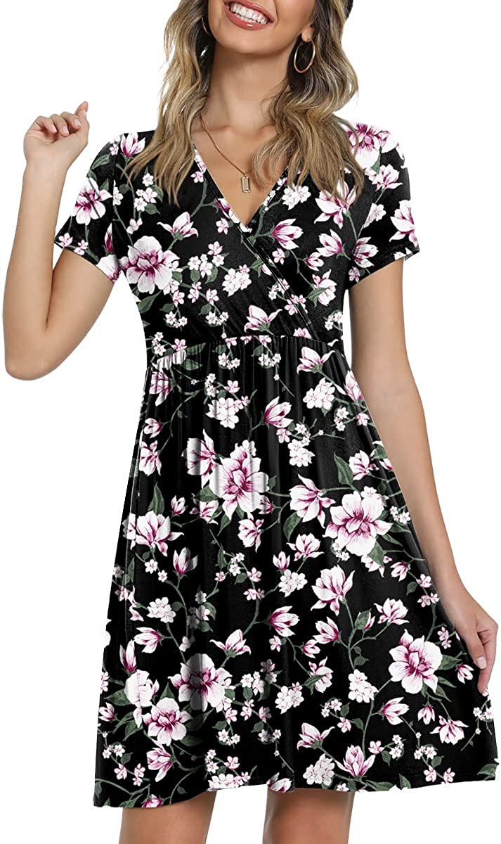 • ❤ 【 Features 】Casual style , Short sleeve, V neck, Elastic tunic at waist, Solid, Floral print, Elegant. It is perfect for summer, spring and fall.