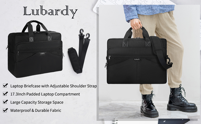 - ?【Great Gift Choice】This 17.3inch laptop bag has waterproof fabric, YKK zippers, leather handles, detachable padded shoulder strap and multiple practical compartments, which perfects for son, father, husband and yourself. And this reusable laptop bag can be used for daily, school, work, travel, overnight etc. Whether you are business people, college students or computer professionals, this large capacity laptop briefcase will be a great choice for you.