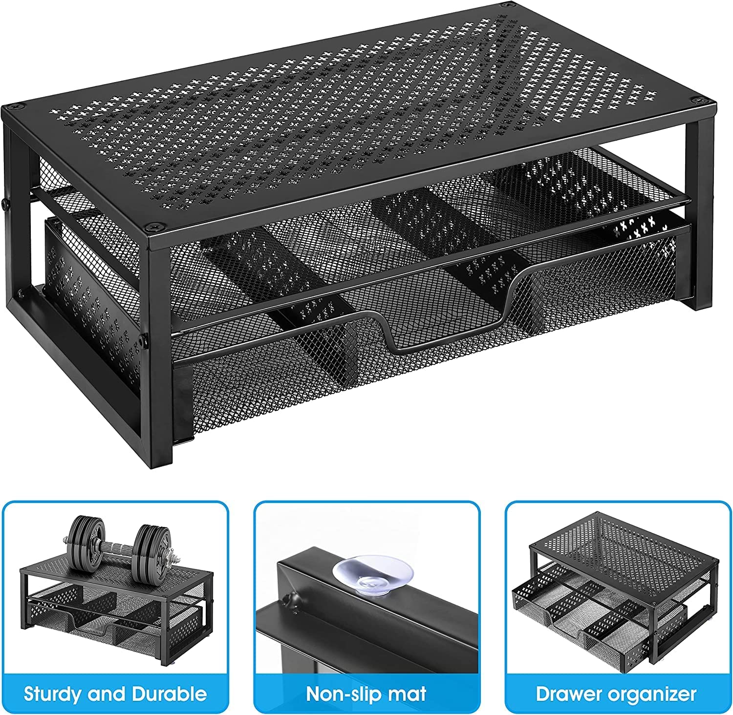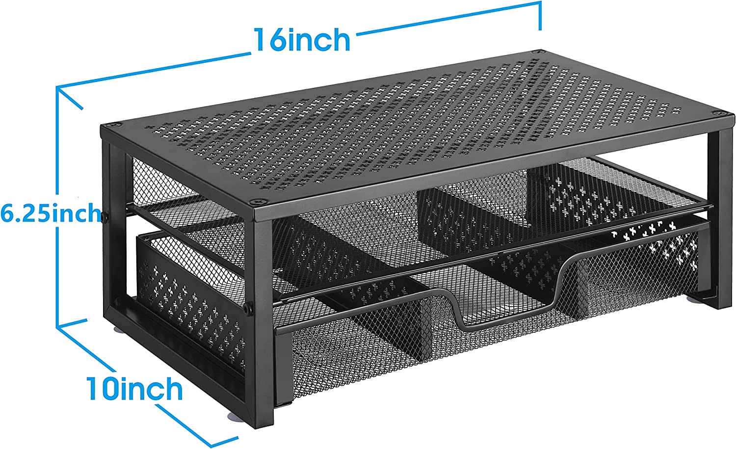 Simple Trending-Metal Monitor Stand Riser and Computer Desk Organizer with Drawer for Laptop, Computer, iMac, Black