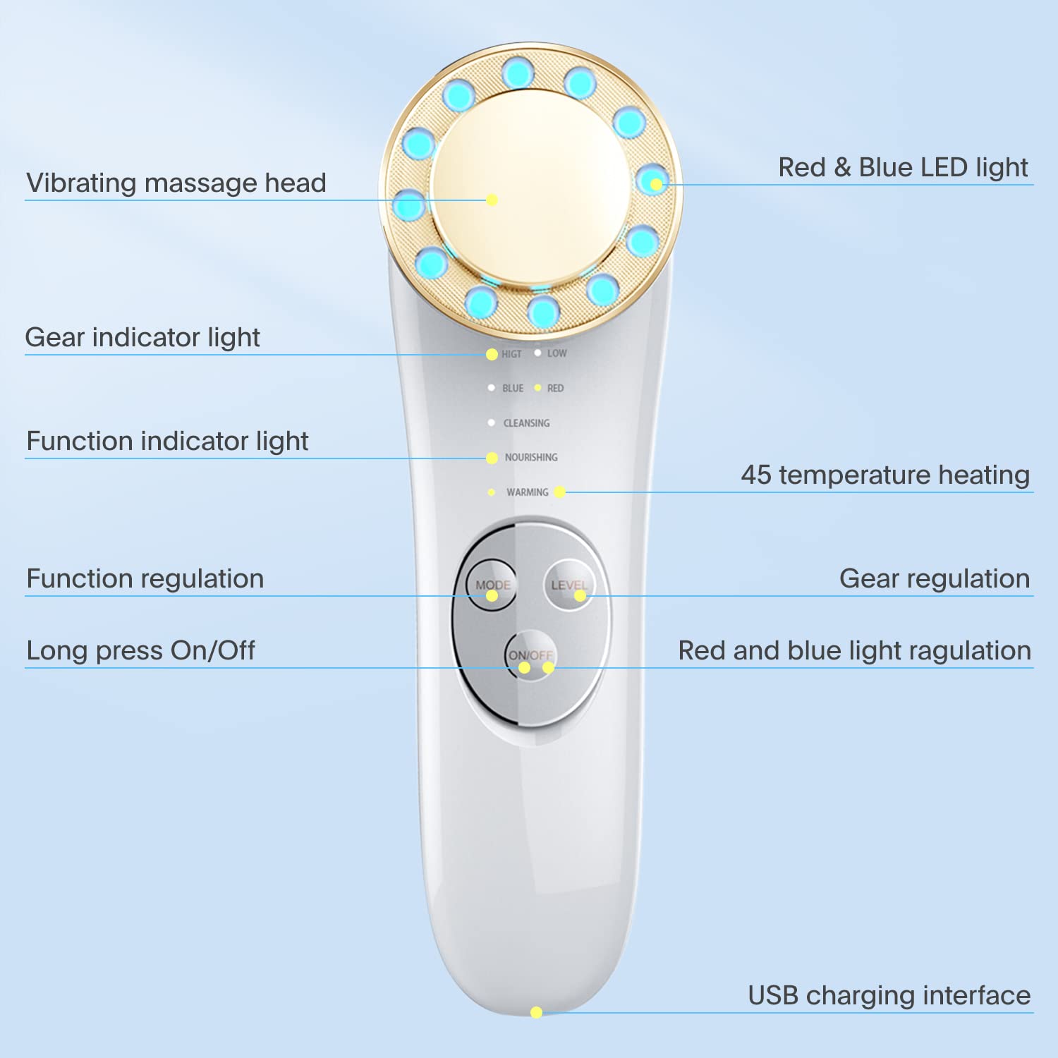 • 【Red and Blue Light】Blue wave improves acne and blackheads. Red light waves can effectively penetrate the skin, activate collagen activity, and improve dark spots.