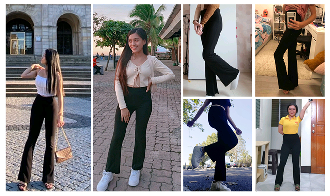 Features: elastic high waist, ribbed, long pants, flare, horn leg, lace hem.