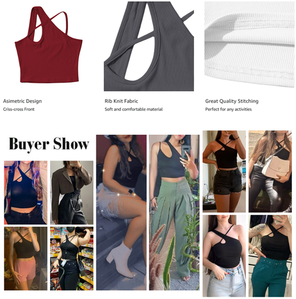 Remidoo Women's Sexy Strap Asymmetrical Neck Cutout Ribbed Knit Slim Fit Cami Crop Top