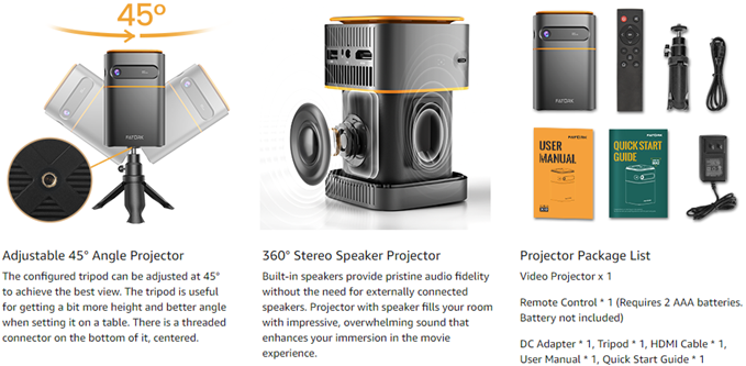 - ?【CUSTOMER SERVICE SUPPORT】: FATORK has always been committed to providing excellent pocket projectors and 100% satisfied customer service. We provide 12 months of professional after-sales service and permanent professional technical support. If you have some problem, please contact us on Amazon, and we will try our best to solve it for you within 24 hours.