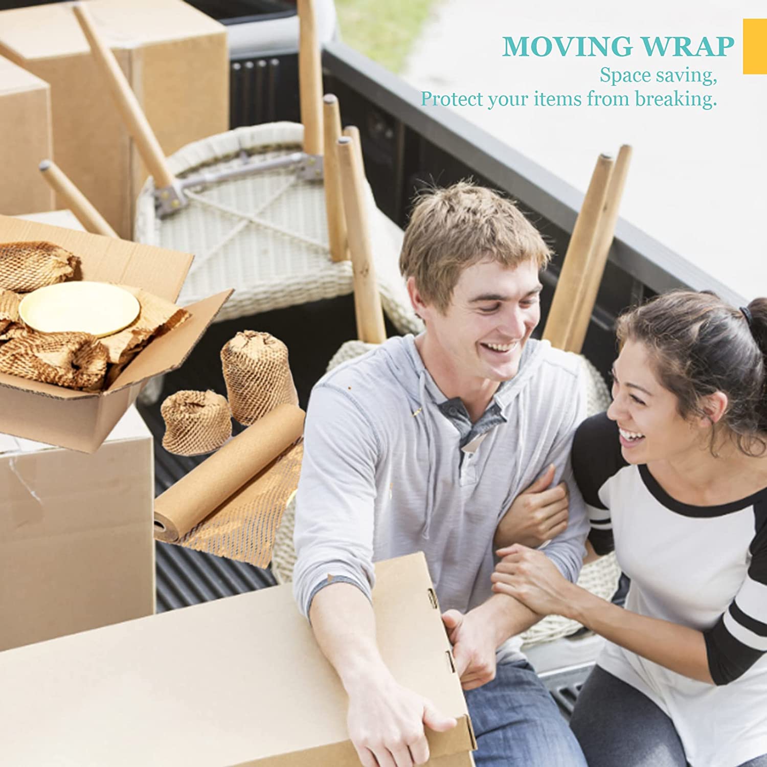 Better Packing Paper for Moving: the packing paper with honeycomb structure made it can be stretched from 135 feet to 216 feet. 1.6 times longer after stretching. Use less money, get more filler, and space saving. Also you can get 20 Fragile Sticker labels, to keep your boxes safe during transportation.