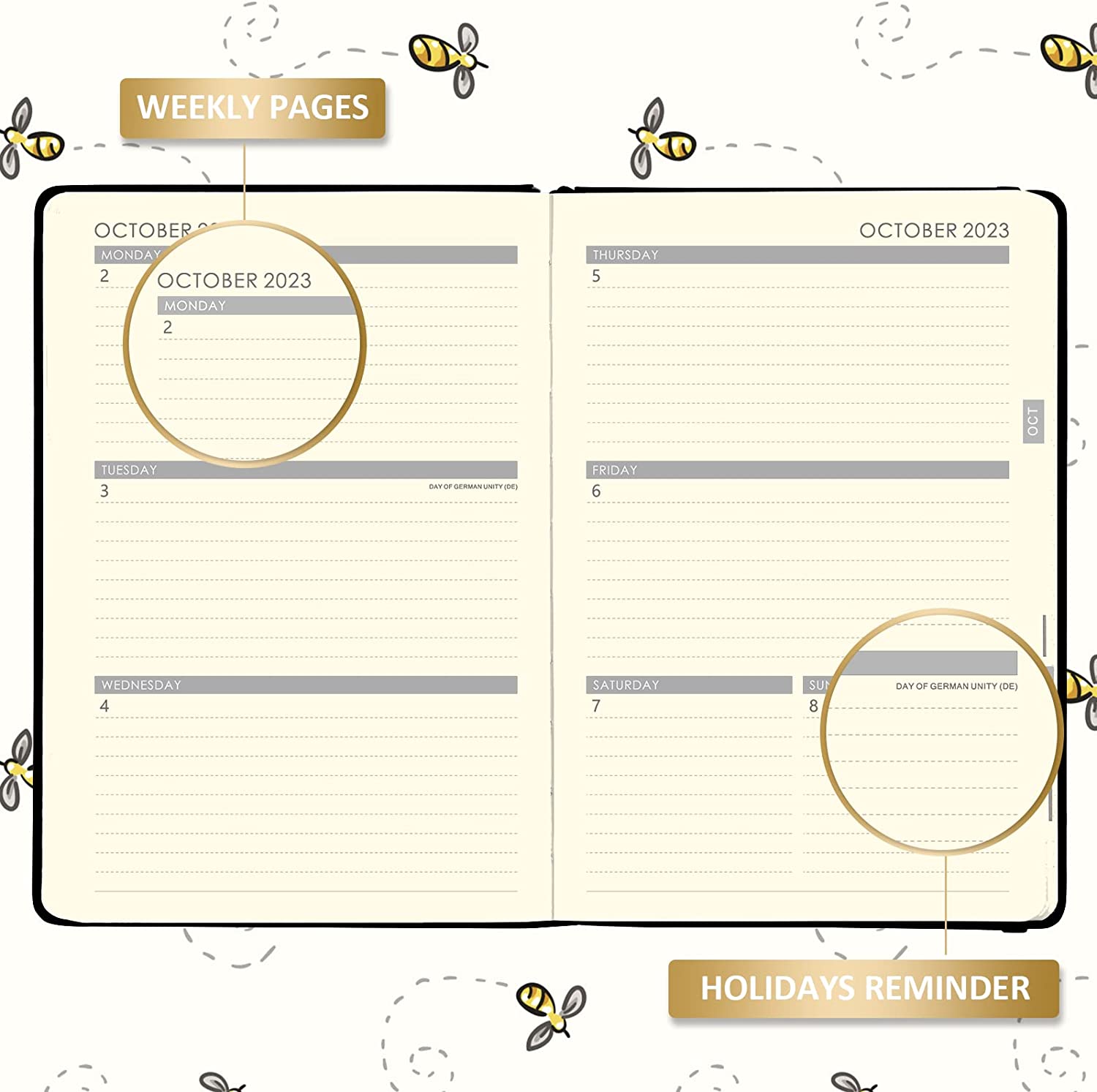 • Thicker and off-white paper is used in this 2023-2024 planner. No bleach, which can adequately protect your eyesight.