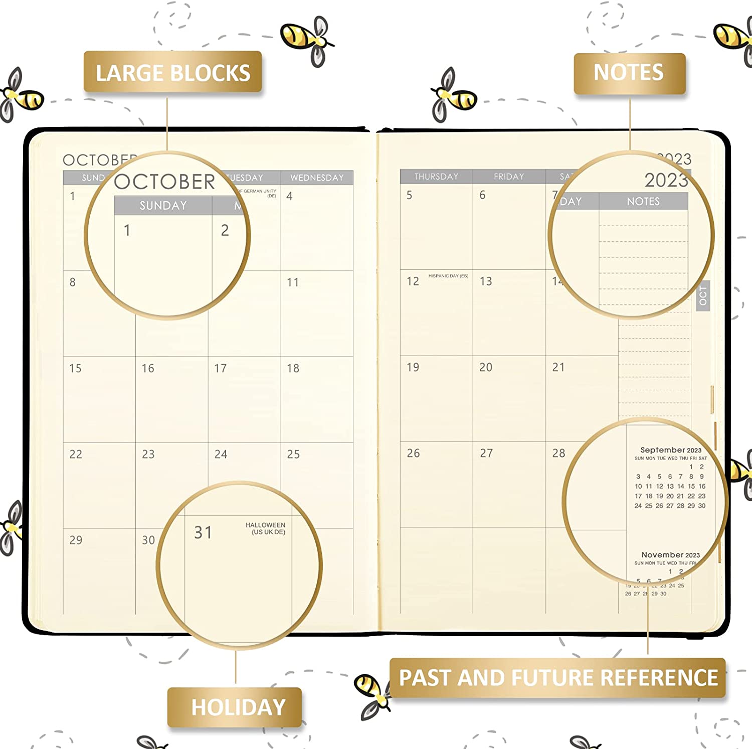 Planner 2023-2024 - Academic Planner 2023-2024 from July 2023 - June 2024, 2023-2024 Weekly Monthly Planner with Calendar Stickers, 5.75" x 8.25", Saffiano Leather, Pen Loop, Back Pocket - Black Bee