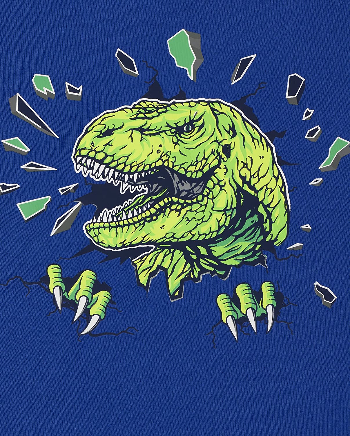 • PAJAMA TOP — Features contrast rib-knit crew neck, short sleeves and dino graphic design at front
