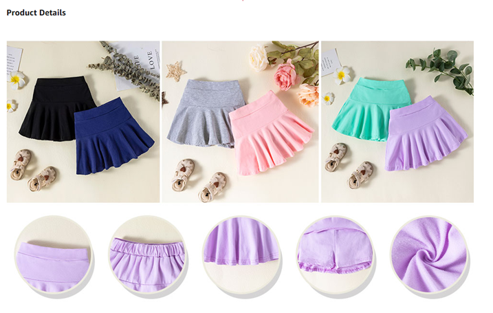 • ❤Features:High-quality fabrics bring great feel, Each set of clothes has two colors or pink-grey or green-purple or black-blue, Let your little princess have the right choice for all occasions, the outside of this suit is a skirt and the inside is safety pants.