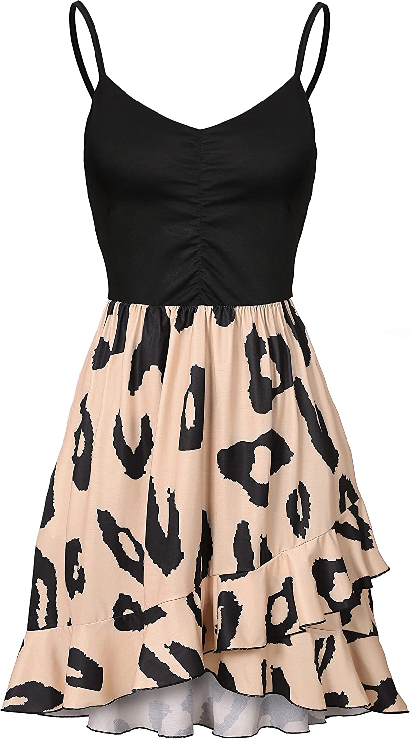 UNIQUE FUNCTION: This women's spaghetti casual sundress is designed with flattering gathered bust and gathered skirt,hides you imperfections well.Cross and irregular ruffles flowly hem perfect sets off your leg length.makes you look more chic and attractive!