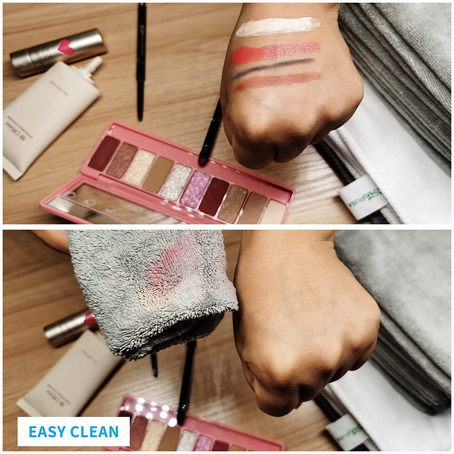 • ✓VPMURUGA Easy Clean Microfiber Face Towels- Extra Soft Comfortable and Thick. 400GSM Professional Grade Premium Micro fibre, they are ideal microfiber face cloths for washing face ,erase all makeup with just water.Erase grease,oil and dead skin cells without chemicals,exfoliate the skin. Very effective facial towels .