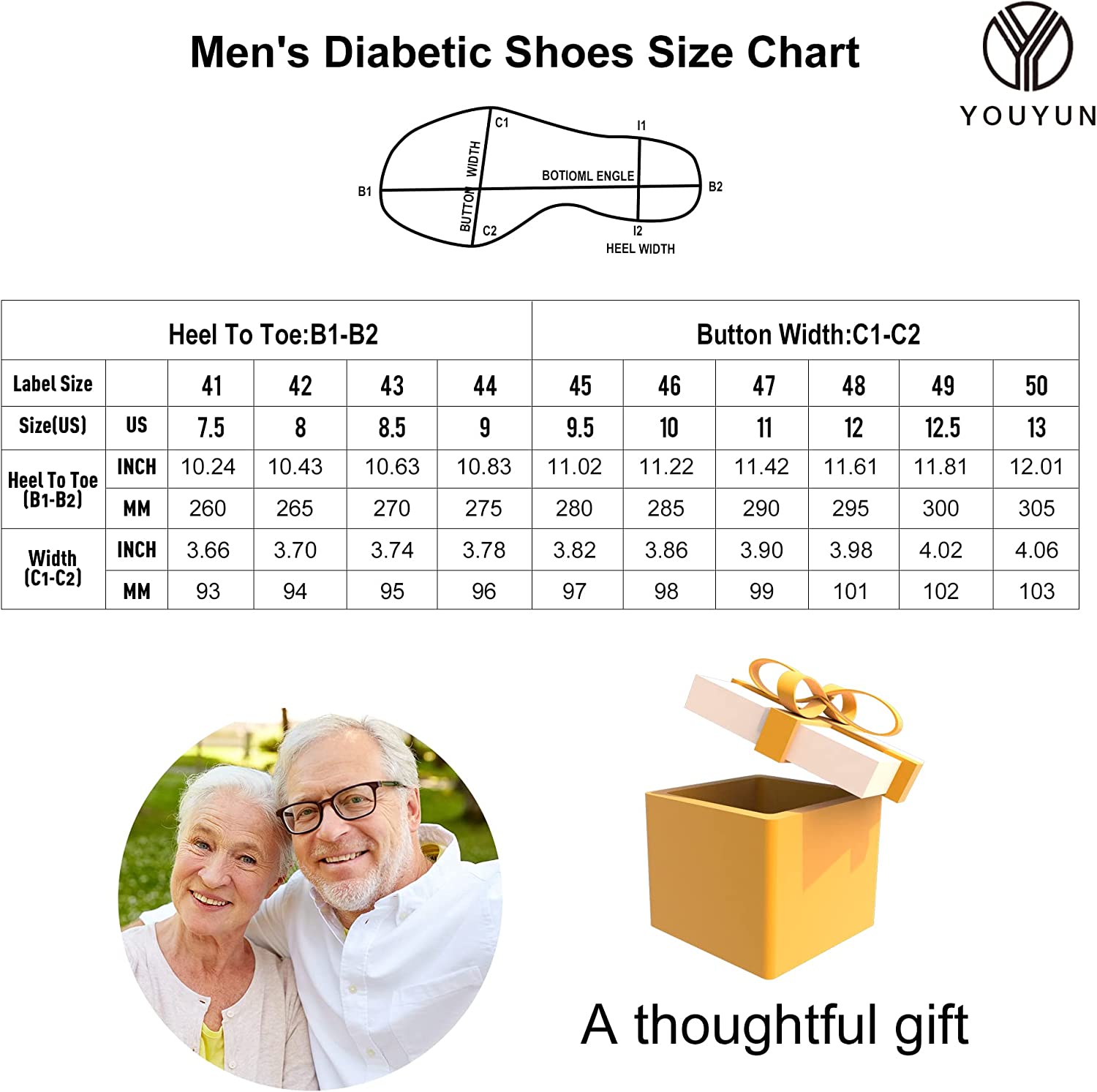 【Comfortable Swollen Feet Shoes】 : The diabetic shoes for men have a unique velcro design, free adjustment for different instep height. The lining can be pulled to the toes, so that your swollen feet can easily wear into the shoes, perfect fit for edema and swollen feet.