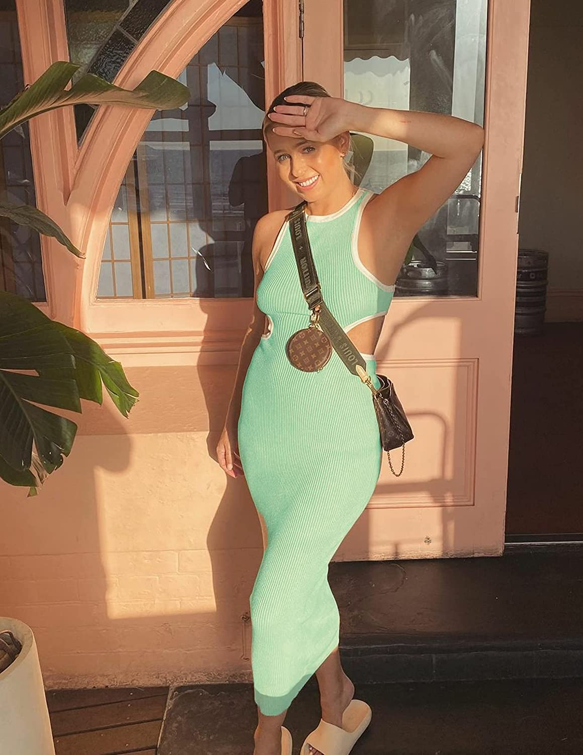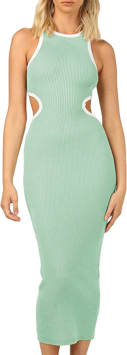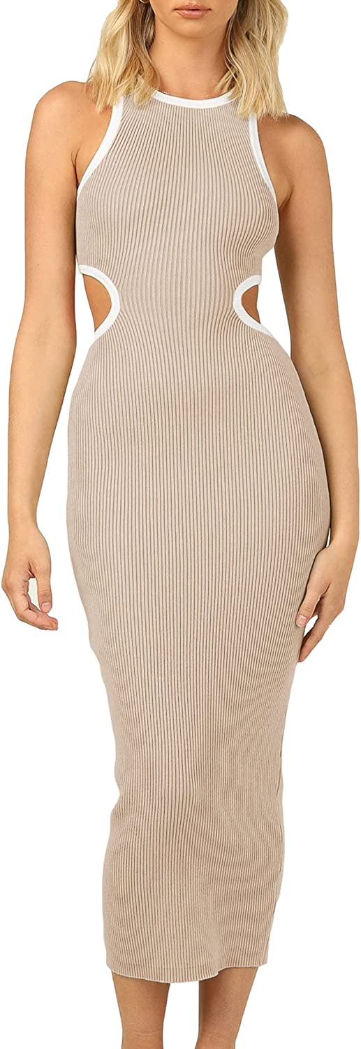 KMOLY Women's Sexy Sleeveless Cut Out Dress Crewneck Bodycon Hollow Backless Knitted Evening Cocktail Party Midi Dresses