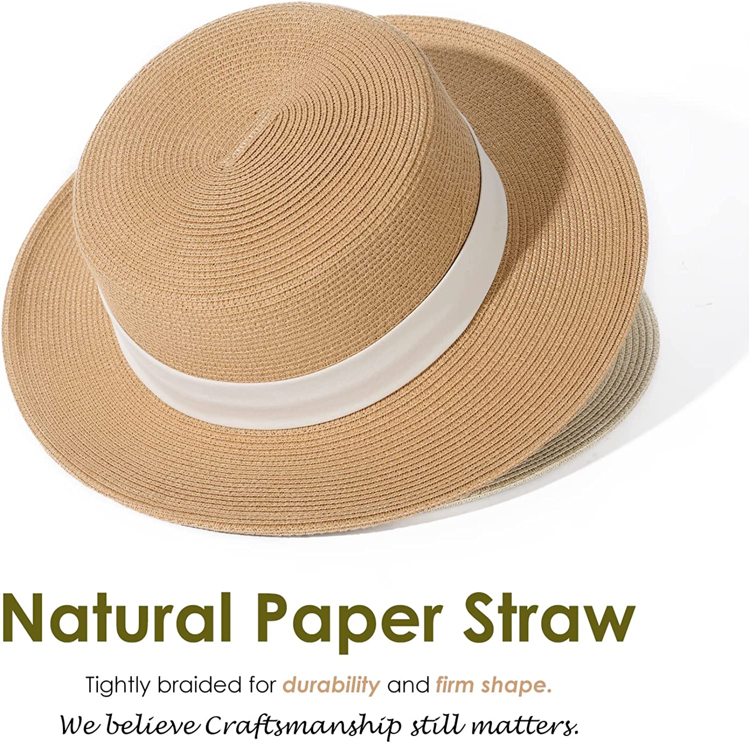• Summer Straw hat: This straw hats are made of breathable paper straw and polyester; Tight braiding ensures durability,neither too stiff or too floppy;