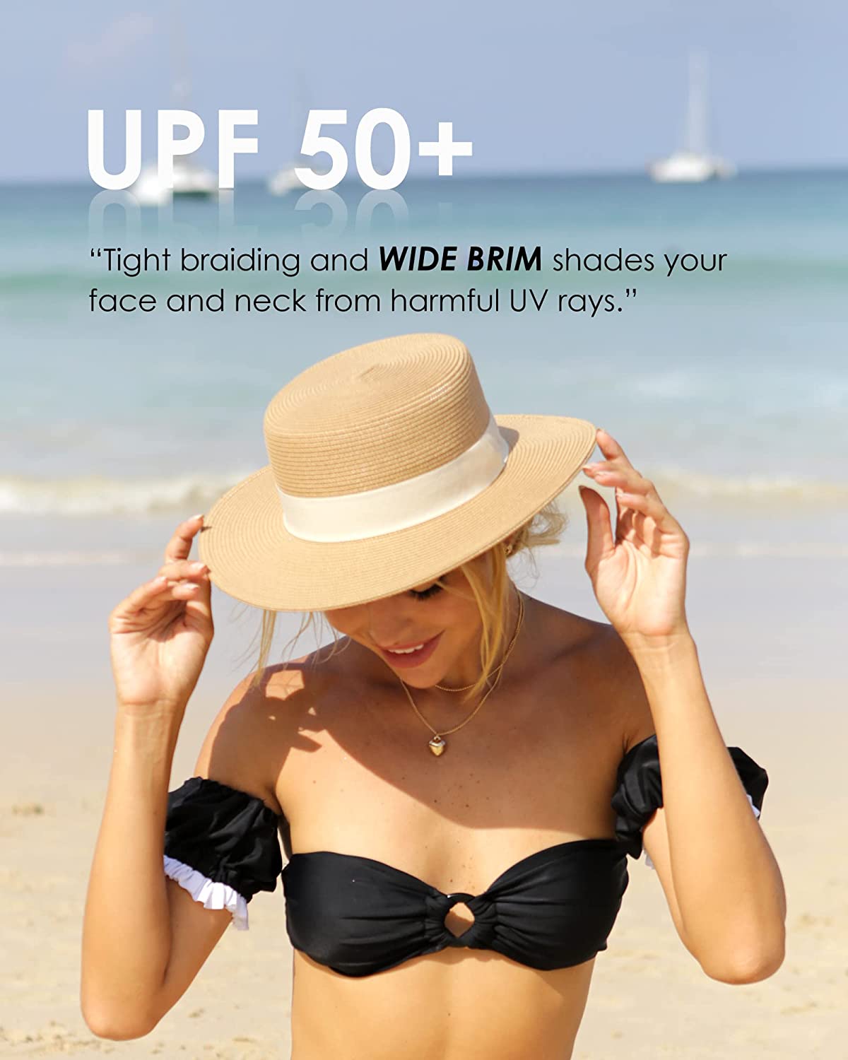 • Packable Beach Sun Hats: With high-quality materials and skilled craftsmanship, this straw sun hat can be folded up.It's so convenient to carry it in suitcases when you go travelling; If the straw beach hat is deformed due to shipping,you can put the hat on a flat surface with wet rags on the brim of the hat ,then place some weight on the brim and let it sit overnight, you can also use a clothing steamer.