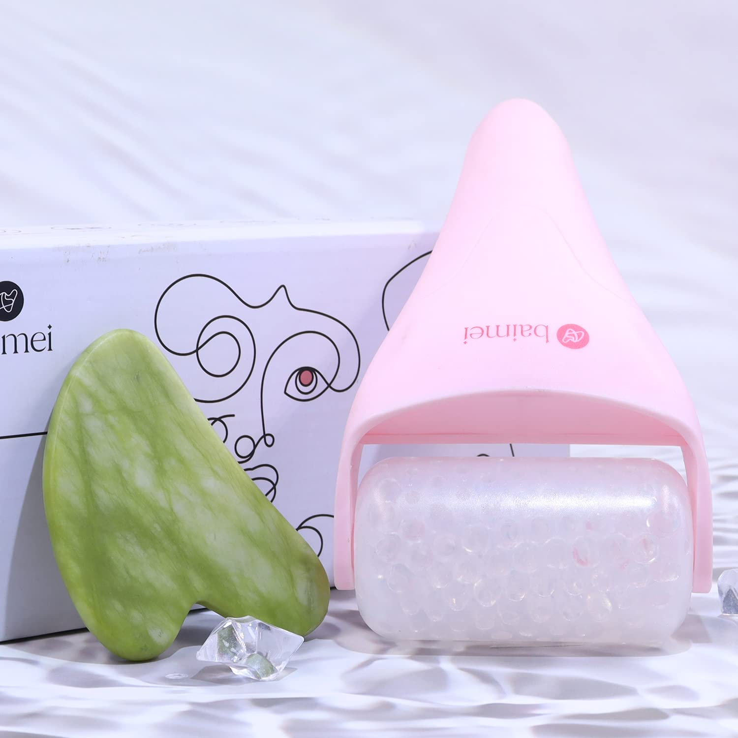 Ice Roller for Face and Gua Sha Facial Tools, BAIMEI Ice Face Roller Reduces Puffiness Migraine Pain Relief-Pink