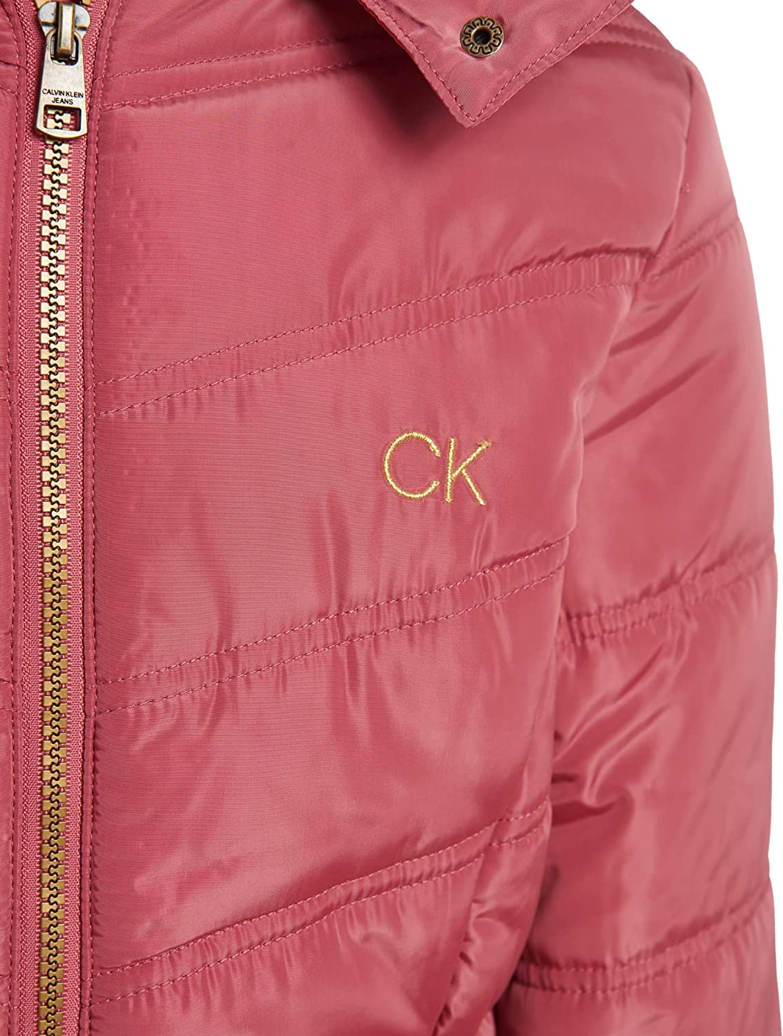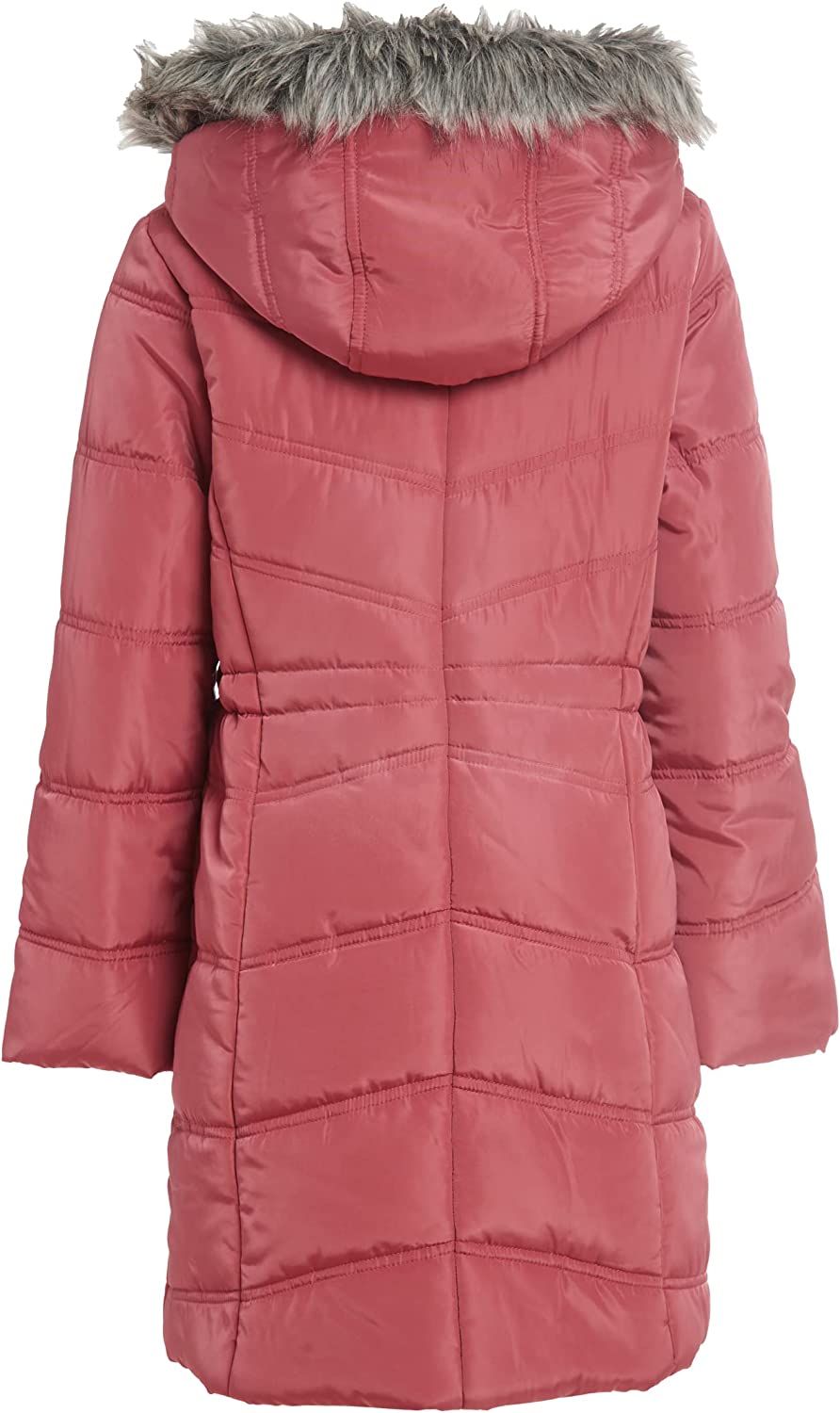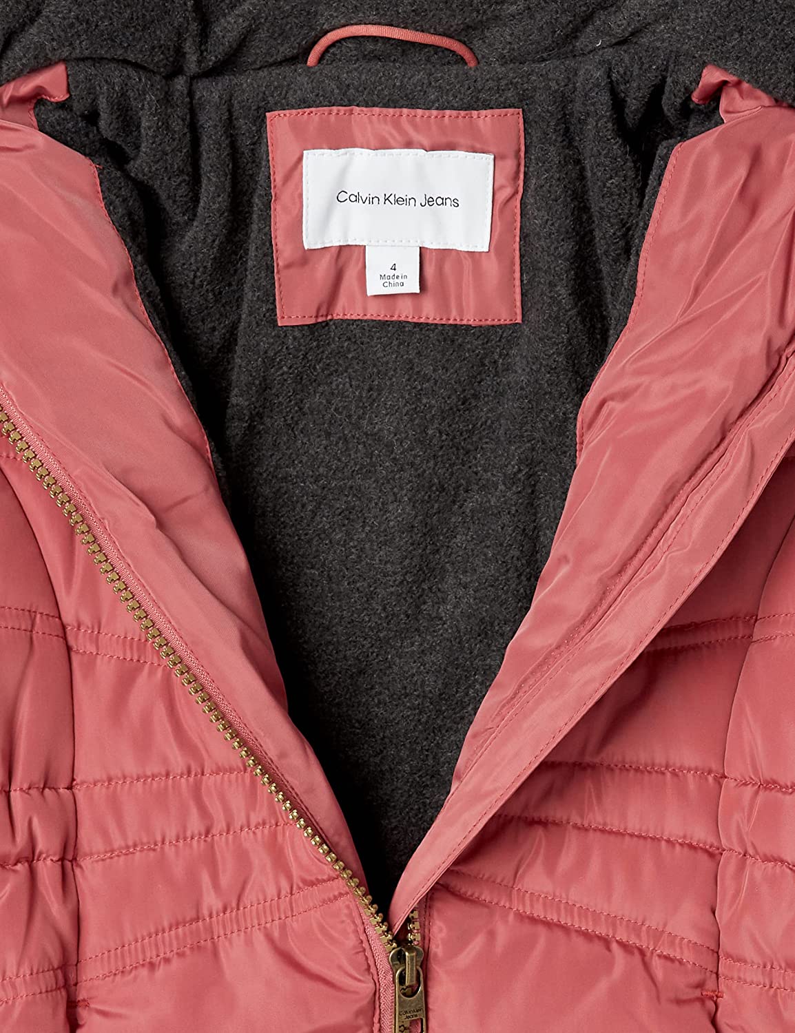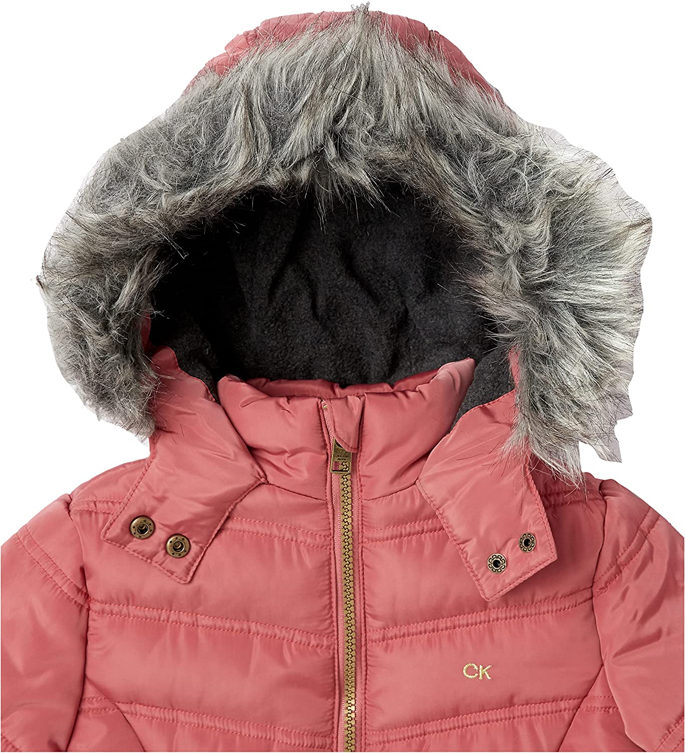 Calvin Klein Girls' Long Length Hooded Puffer Jacket with Fleece Lining