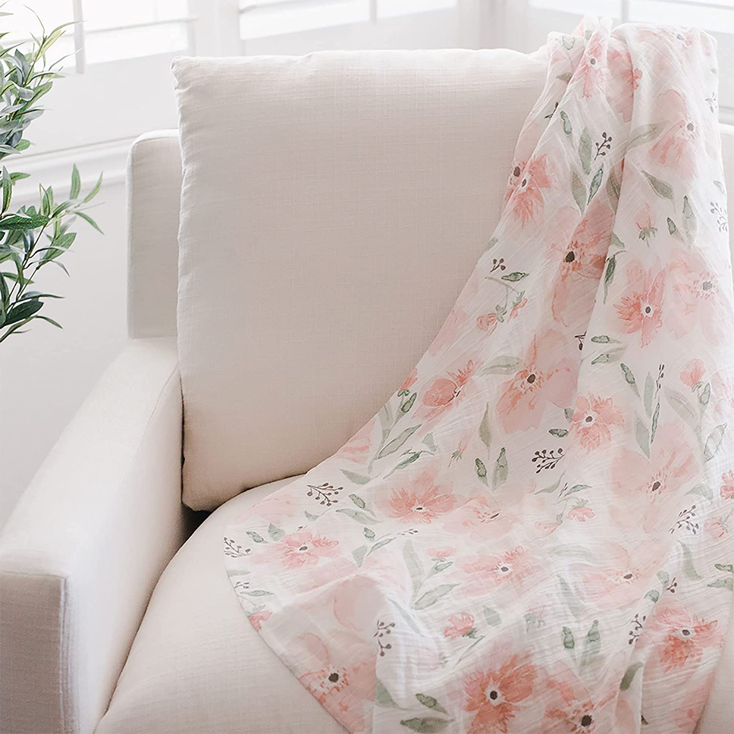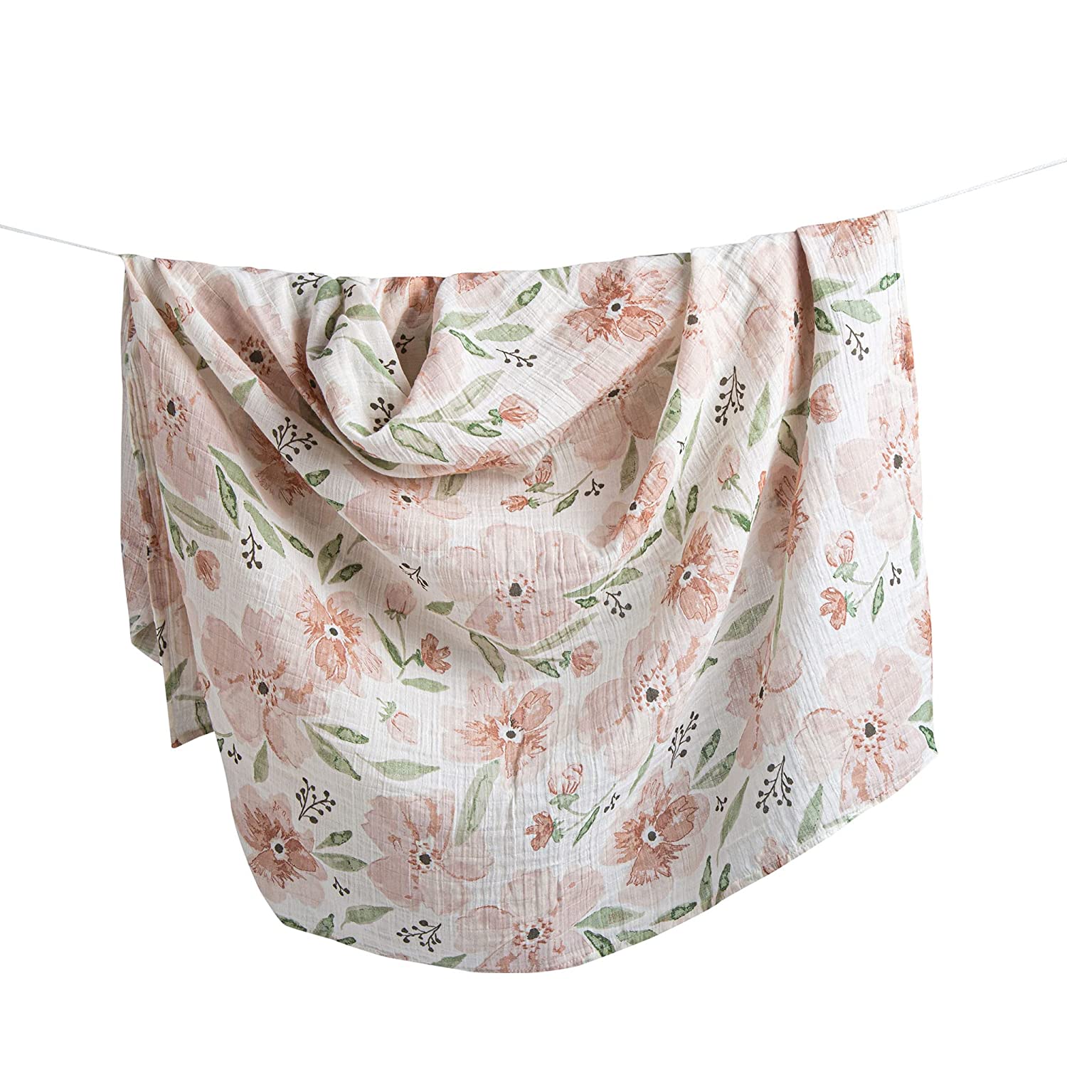 • SIZE: One 47" x 47" pre-washed cotton muslin swaddle blanket in floral print