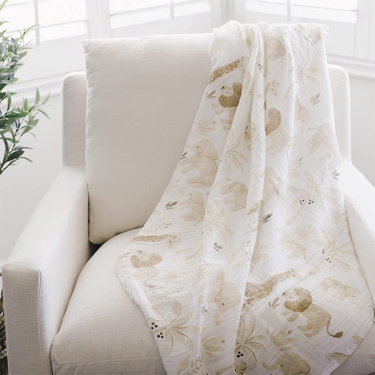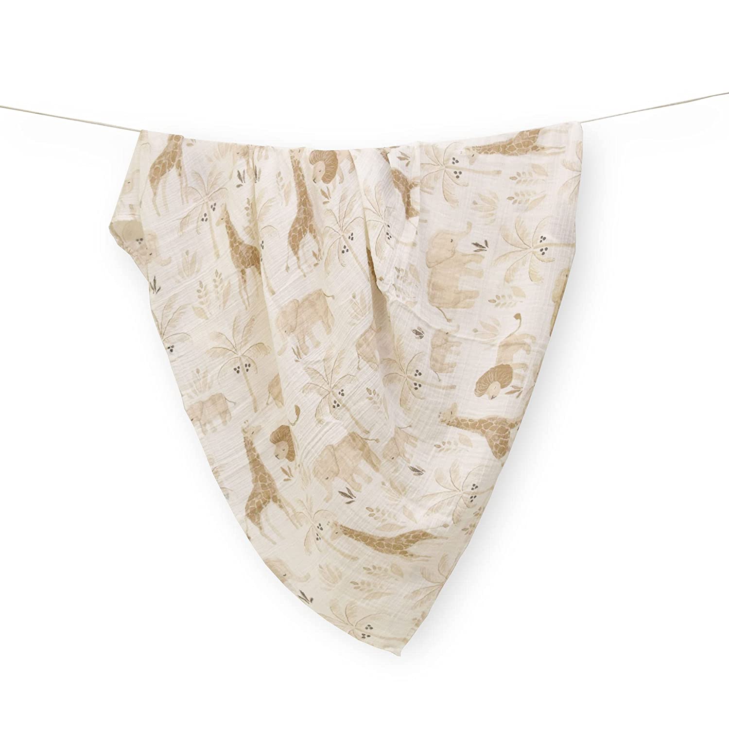 Crane Baby Soft Muslin Swaddle Blanket, Soft Swaddle Wrap for Boys and Girls, Safari Animal, 47" x 47"