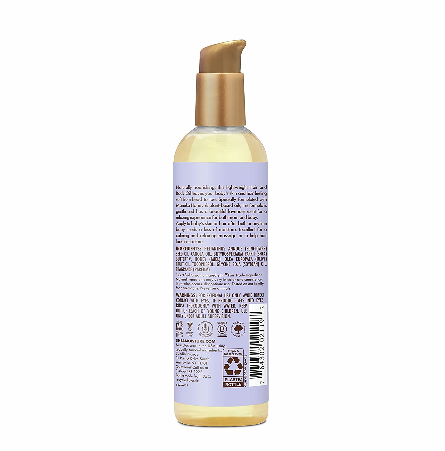 • All SheaMoisture hair and skin care products are sustainably produced and Cruelty-Free. This hair and body oil for babies is pediatrician-tested and hypoallergenic