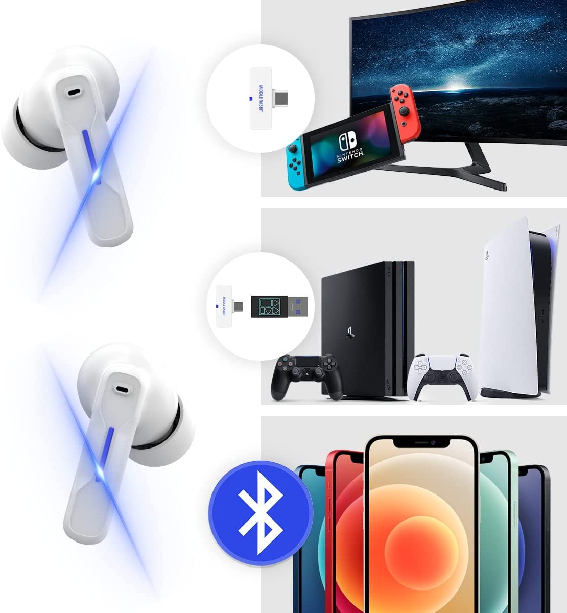 • 【2.4GHz USB Dongle Connection & Bluetooth Connection (Both Supporting Mic)】 The Middle Rabbit SW4 earbuds support both 2.4G Dongle and Bluetooth connections. This ensures that the earbuds can connect to PCs, PlayStation 4, PS4, PS5, Nintendo Switch, VR, laptops, tablets, mobile phones, iPhones, Android devices, and more.