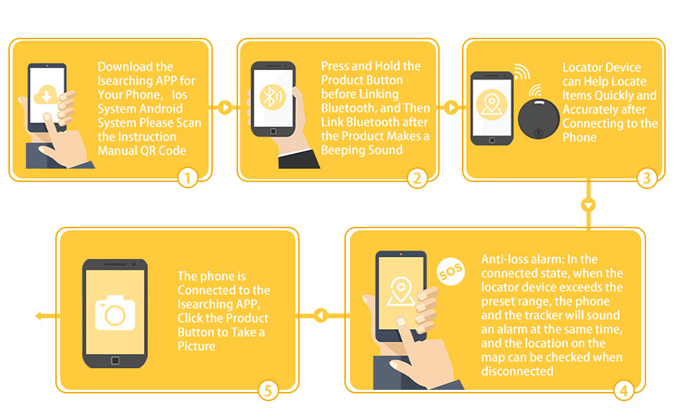 • Convenient to Use: download the APP from the user's manual and it will work, the GPS trackers are easy for your operation, and you just need to press the button for a few seconds, then the receiver will sound beeps, after that you can use your cellphone to search and connect to the device, if you lost your phone, you can double press the button, then your phone would alarm