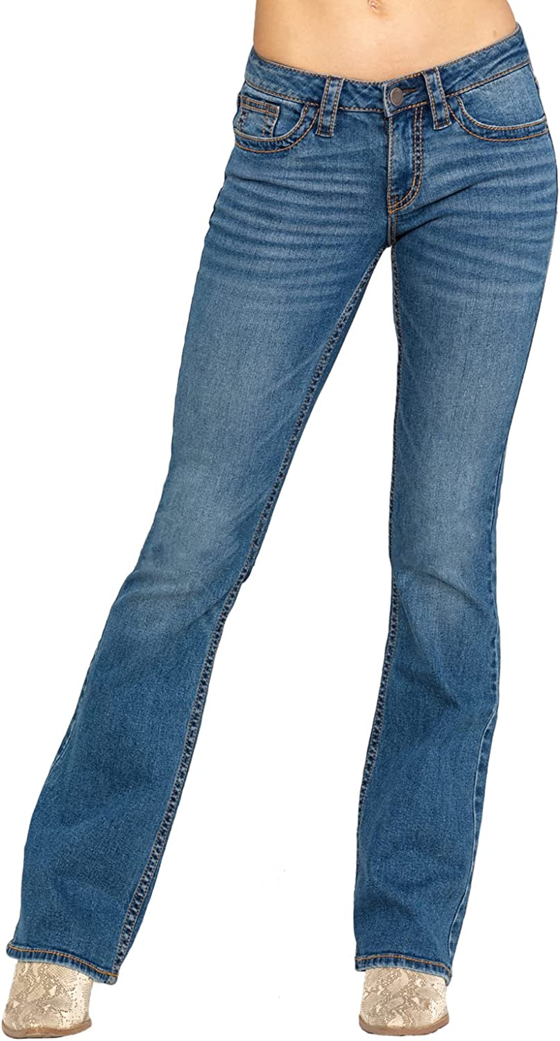 Bootcut Jeans for Women Fit Embroidered Washed Jean Denim Pants