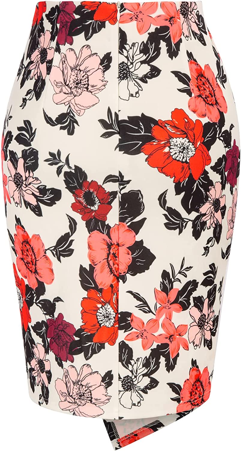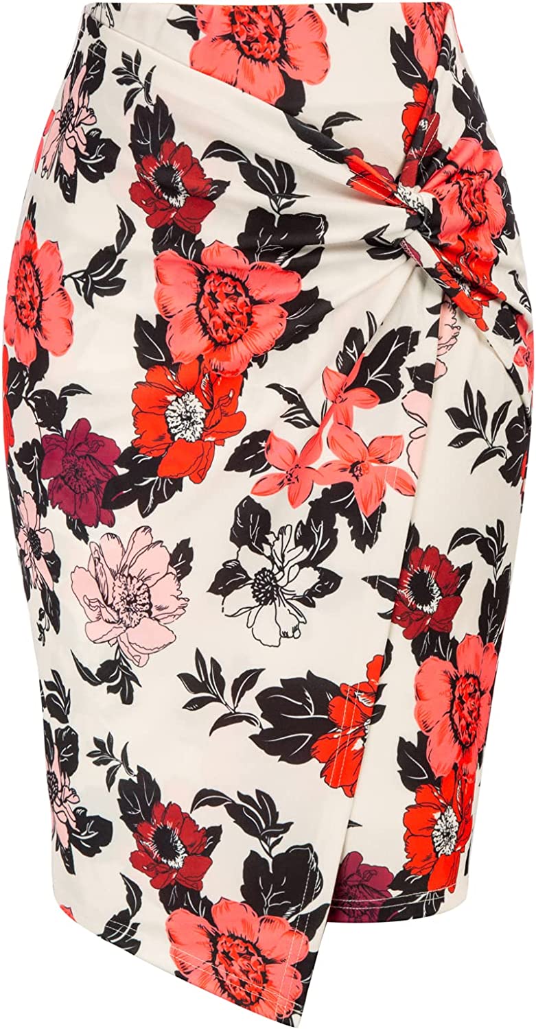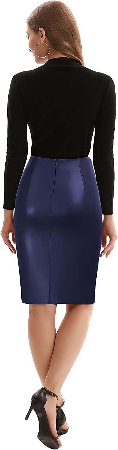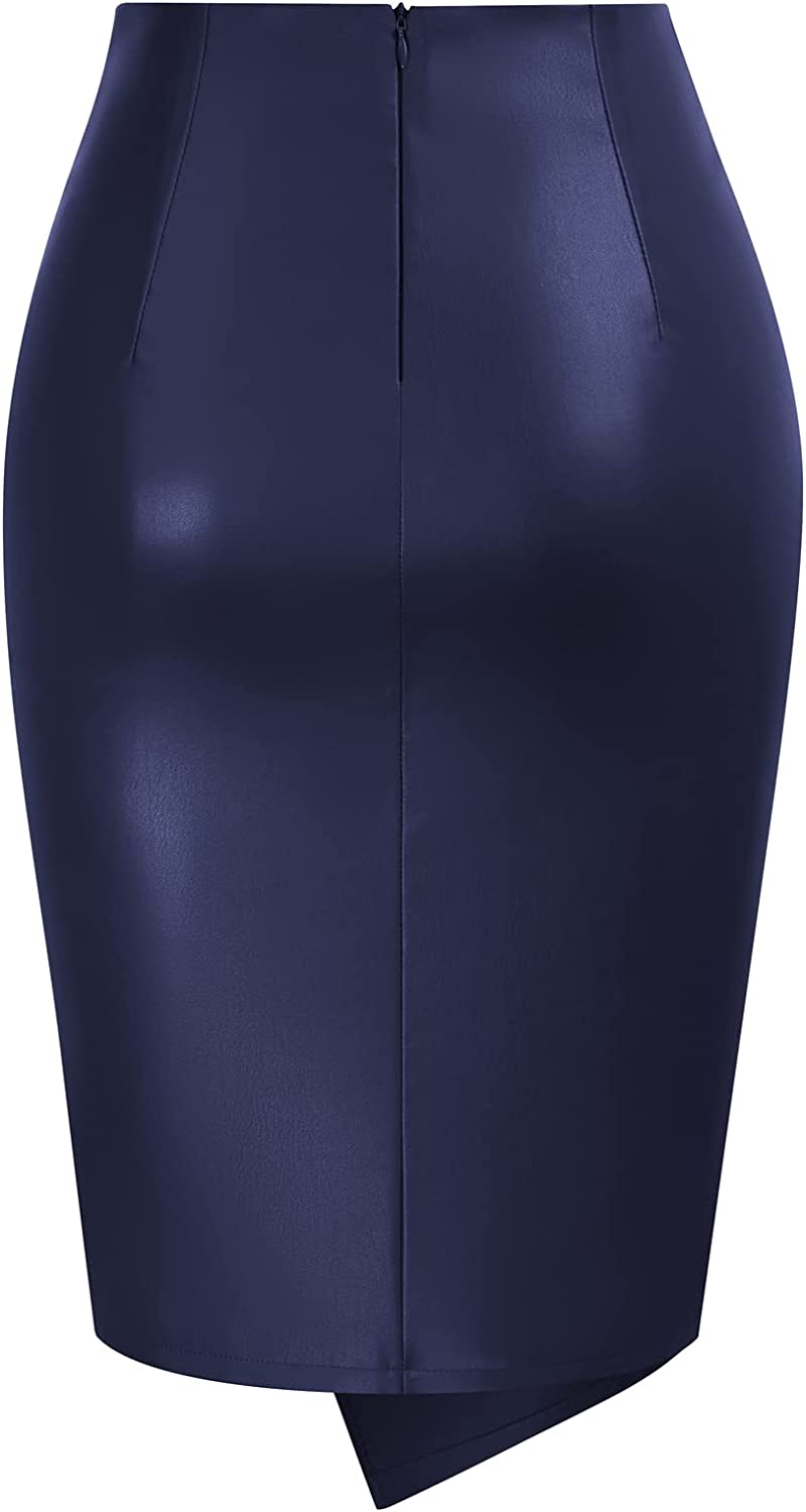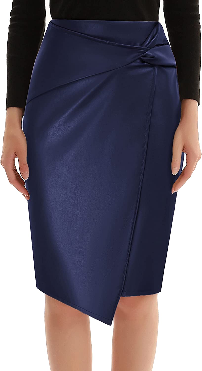 Kate Kasin Wear to Work Pencil Skirts for Women Elastic High Waist Wrap Front