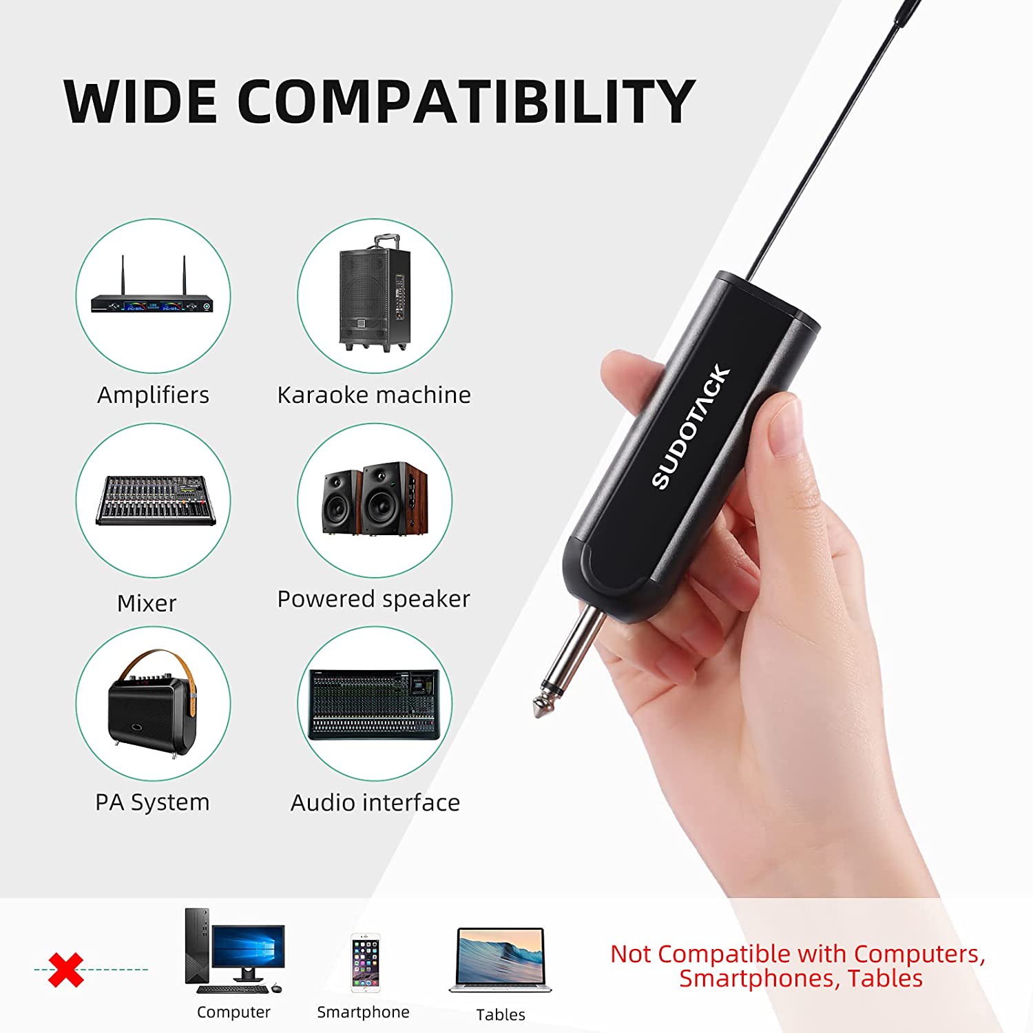 ♪ ?[Signal Stability & Against Interference]: SUDOTACK dynamic wireless microphone with up to 200ft operating range, let you get around the venue or work the room untethered. Home karaoke, conducting interviews, or interacting with your audience has never been easier. In the stable UHF frequency band, You can chain up to 15 wireless microphone systems to allow 30 performers to be onstage at the same time