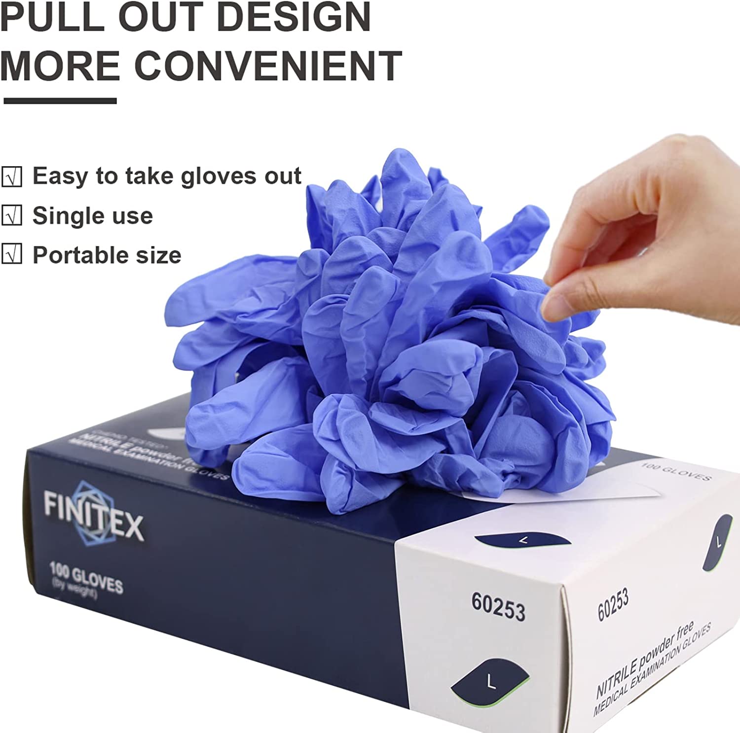 【Comfortable Fit & Safer】 Our FINITEX blue purple nitrile medical exam gloves thick and stretchy so they don't rip or tear easily, these disposable rubber gloves go on easy to wear and take off. They can also be used with phone touch screens. Moreover,Latex-free Powder-free, these non-latex gloves will more safer. For single use only.