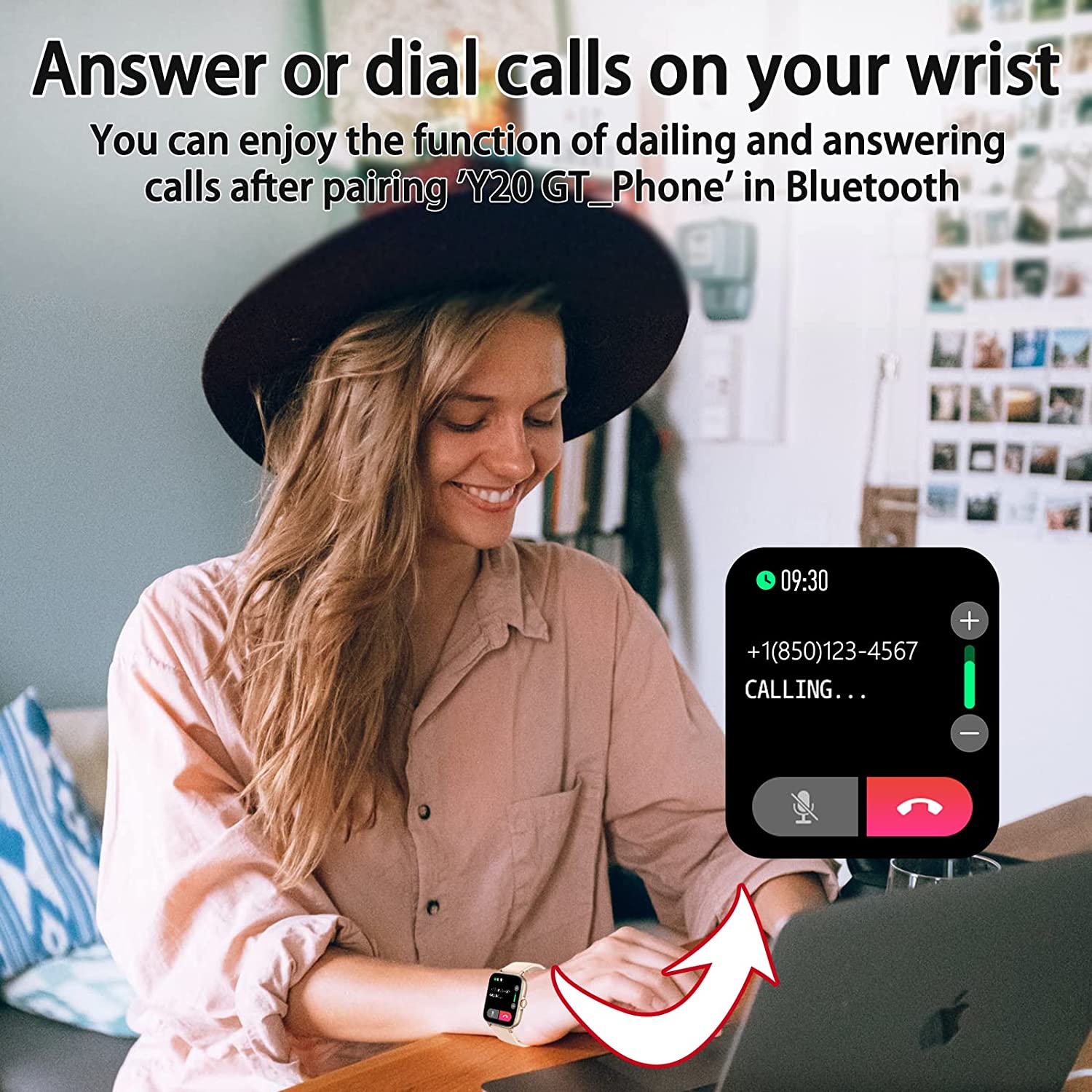• 【Smart Watch with Bluetooth Call and Smart Notification】 It's a smartwatch that allows you to answer or dial calls anywhere, anytime. The call function is connected to the watch via Bluetooth and you can choose to turn it on or off in the settings. Also, the watch will vibrate to remind you when your phone receives the messages or App notifications (Facebook, WhatsApp, Twitter, etc). Never miss any important notification.