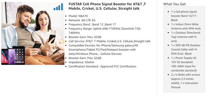 ATT Cell Phone Signal Booster T Mobile US Cellular AT&T Signal Booster Band 12/17 4G LTE 5G ATT Cell Phone Booster T Mobile Signal Booster Cell Booster Cell Signal Booster AT&T Booster Extende